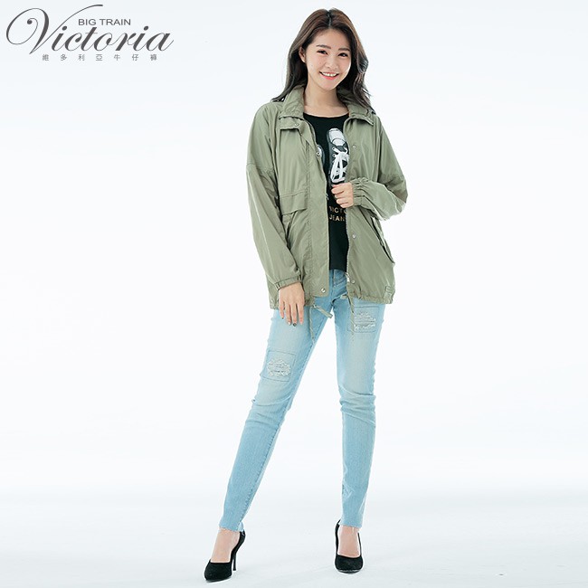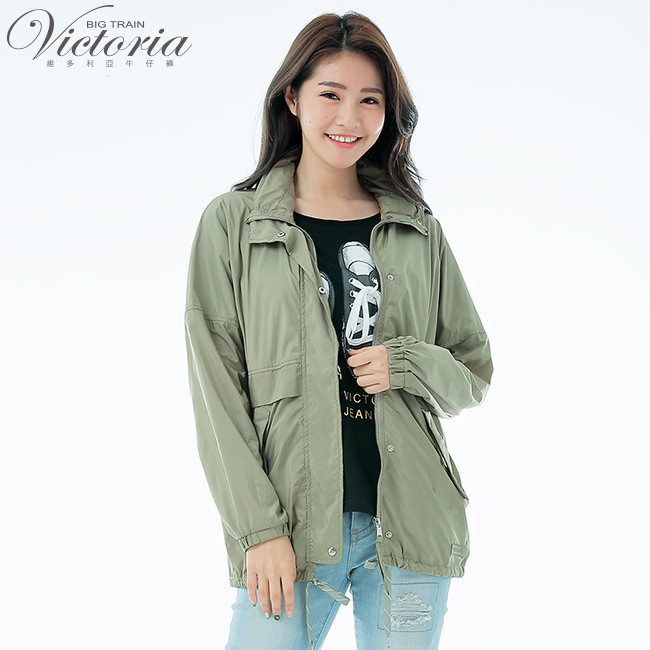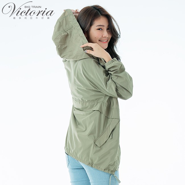 VICTORIA 隱藏帽抗UV休閒防風外套-草綠