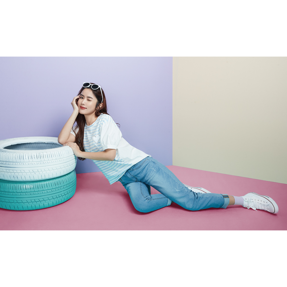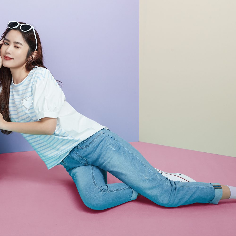VICTORIA 荷葉花邊剪接短袖T-寶藍白條紋S|MT-shirtsBIG TRAIN 官方旗艦店