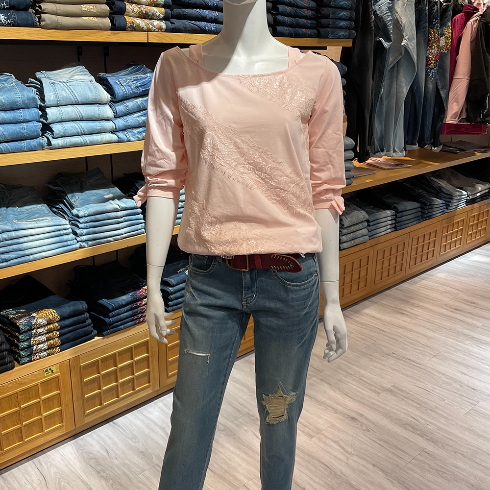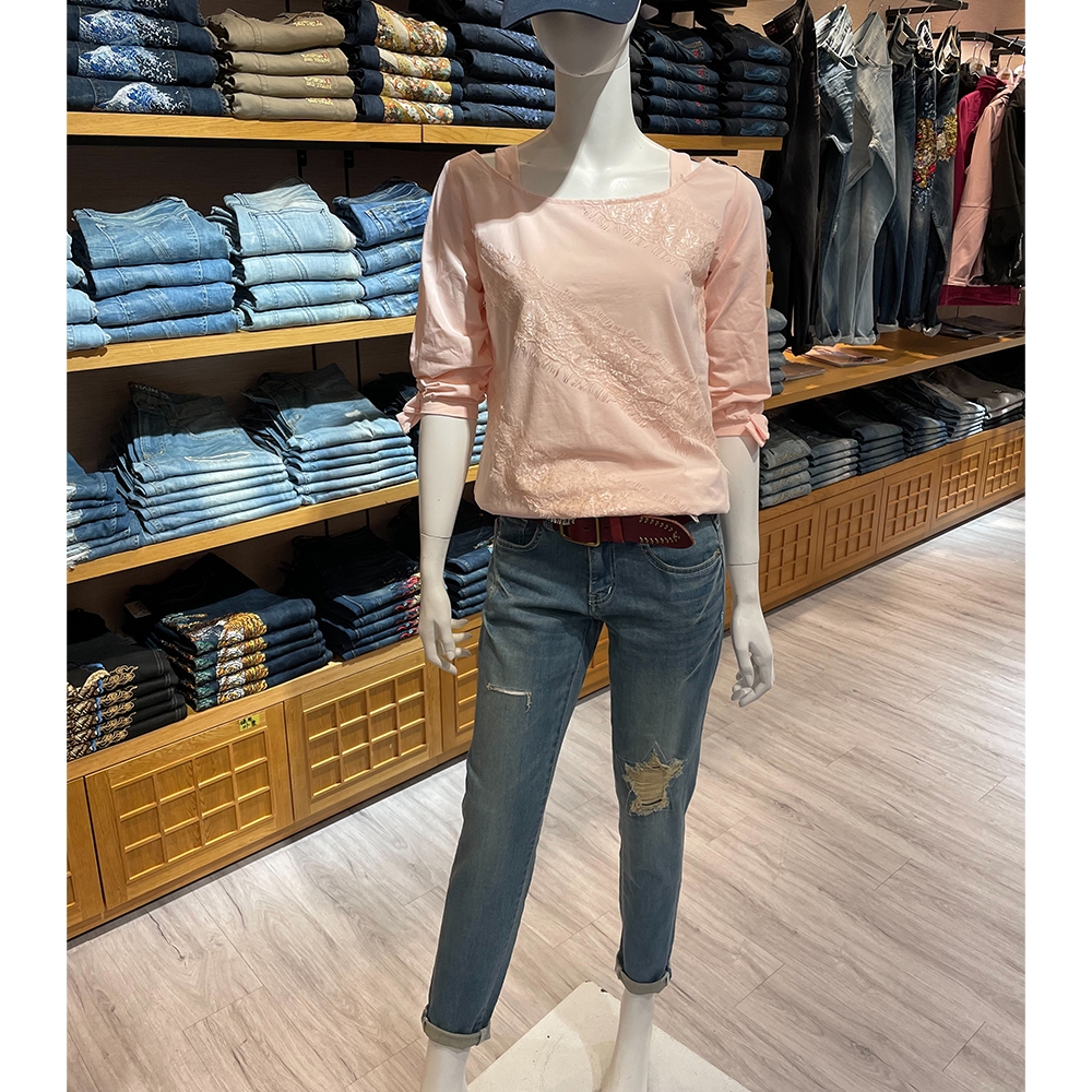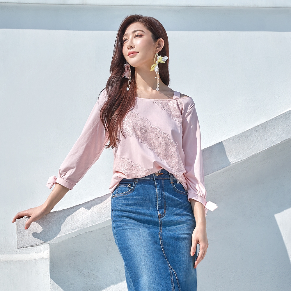 VICTORIA 睫毛蕾絲露肩五分袖上衣 粉紅V85502-10M|L|ST-shirtsBIG TRAIN 官方旗艦店