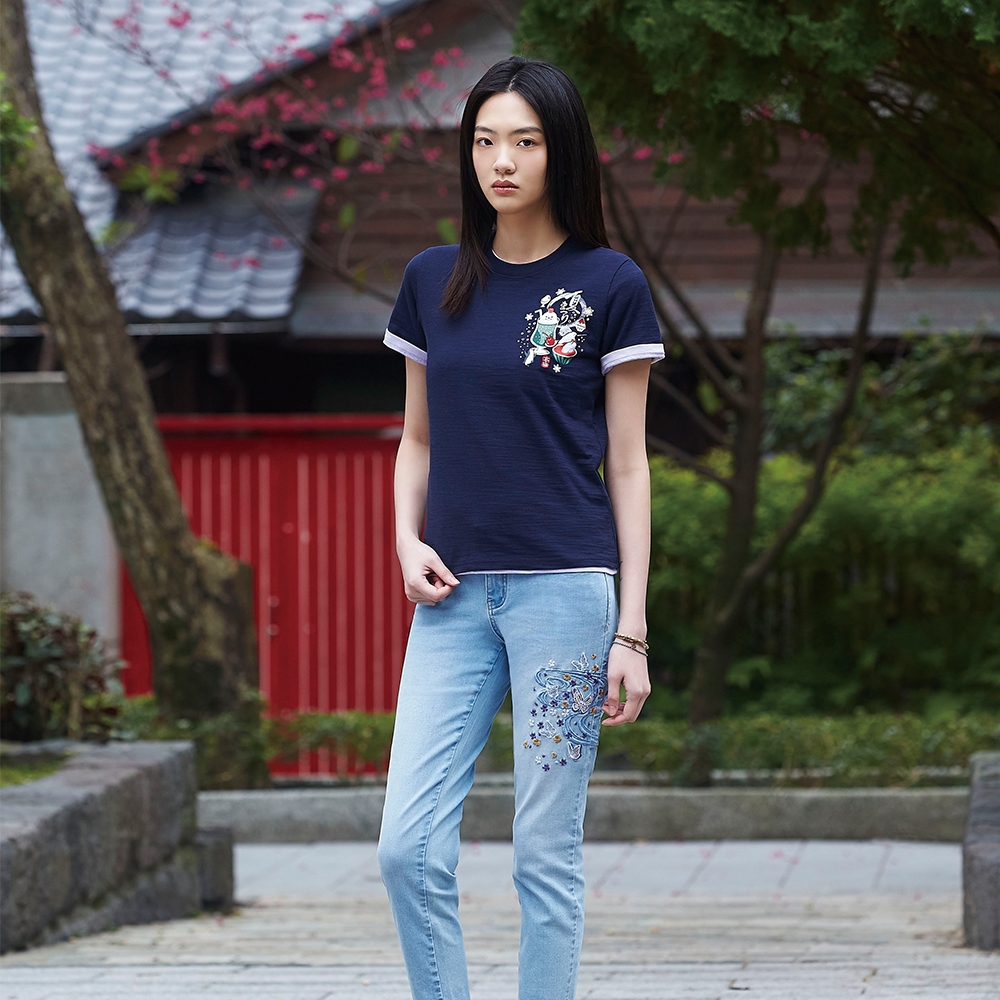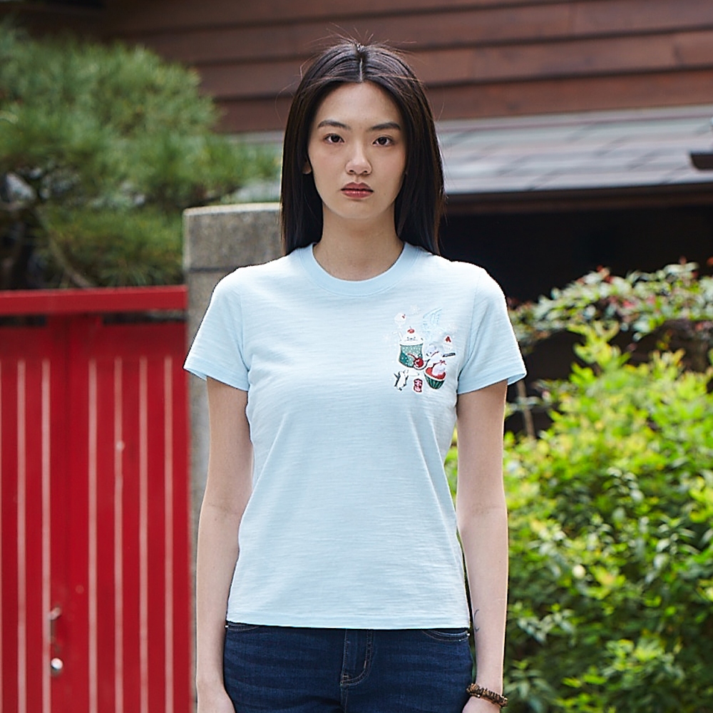 BIG TRAIN月芽招福魚竹節棉女T-B25175-80&88漂白,S|漂白,M|漂白,L|黑,S|黑,M|黑,LT-shirtsBIG TRAIN 官方旗艦店