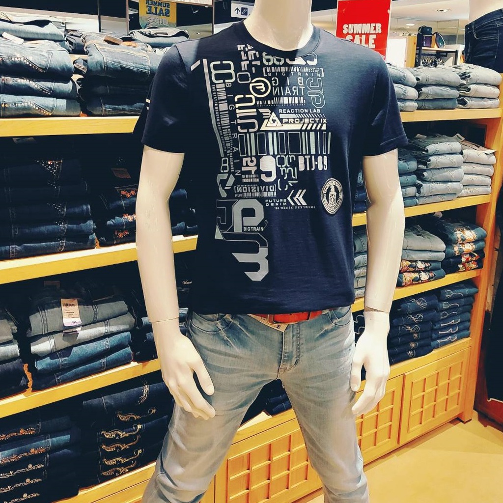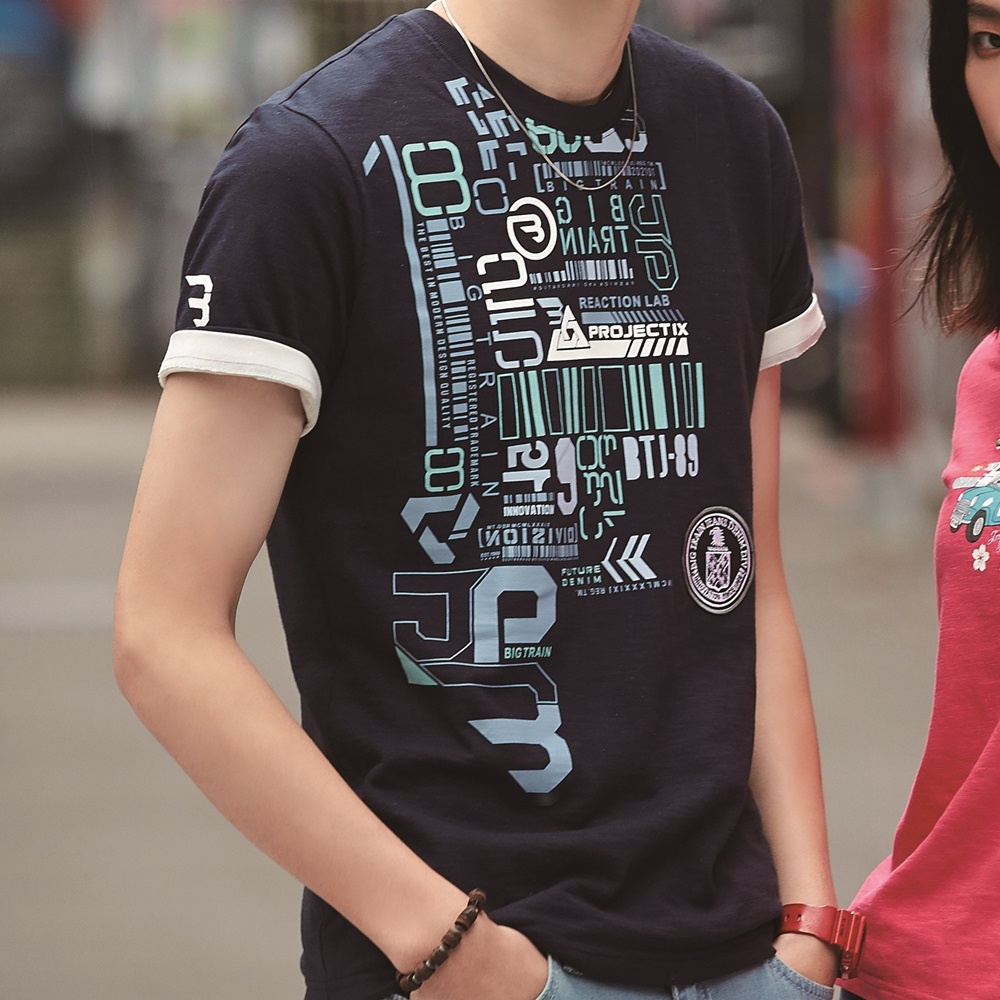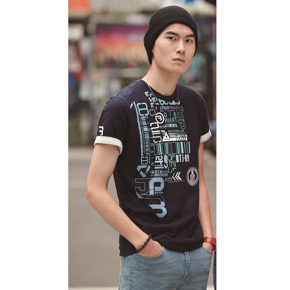 BIG TRAIN 迷幻條碼文字竹節棉潮T 丈青B80761-58M|L|XLT-ShirtsBIG TRAIN 官方旗艦店