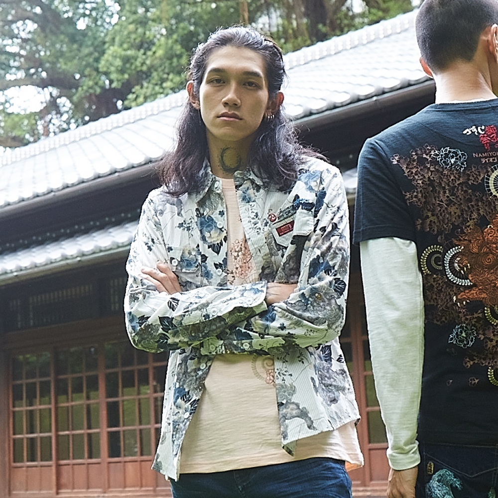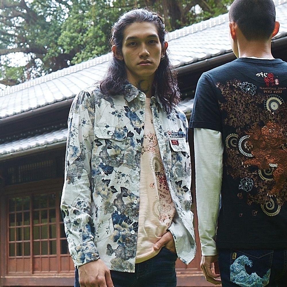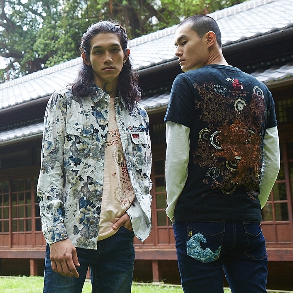 BIG TRAIN加大牡丹唐獅日式印花襯衫-K10093-56&80深藍,2L|深藍,3L|白,2L|白,3LShirtsBIG TRAIN 官方旗艦店