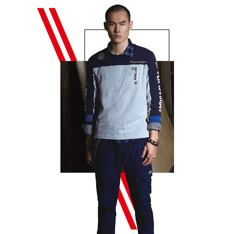 BIG TRAIN黑潮配色彈性束口袖男T-丈青-B20384-58丈青,XL|丈青,M|丈青,LT-ShirtsBIG TRAIN 官方旗艦店