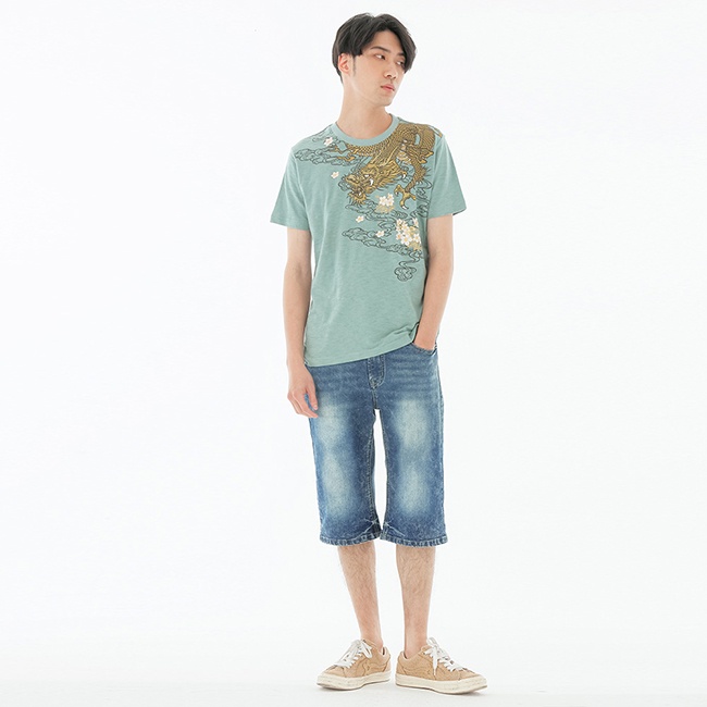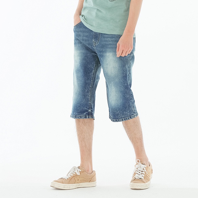 BIG TRAIN 墨達人雪花石洗牛仔短褲-中藍Z50004-76M|L|XL|2L|3LBIG TRAIN 官方旗艦店