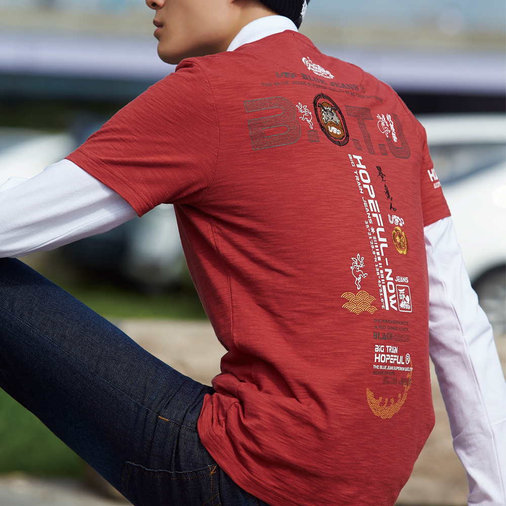 BIG TRAIN 加大日出繡字彈性百搭男T K80799-882L|3LT-ShirtsBIG TRAIN 官方旗艦店