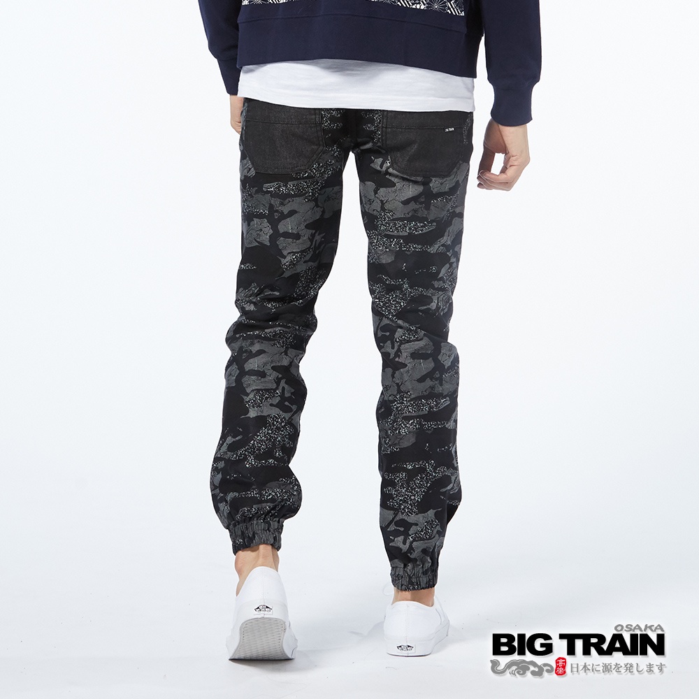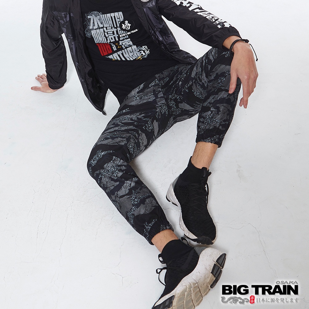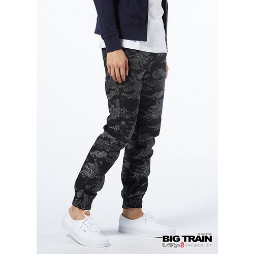 BIG TRAIN 舒適快乾亂紋迷彩束口褲-黑BM8020