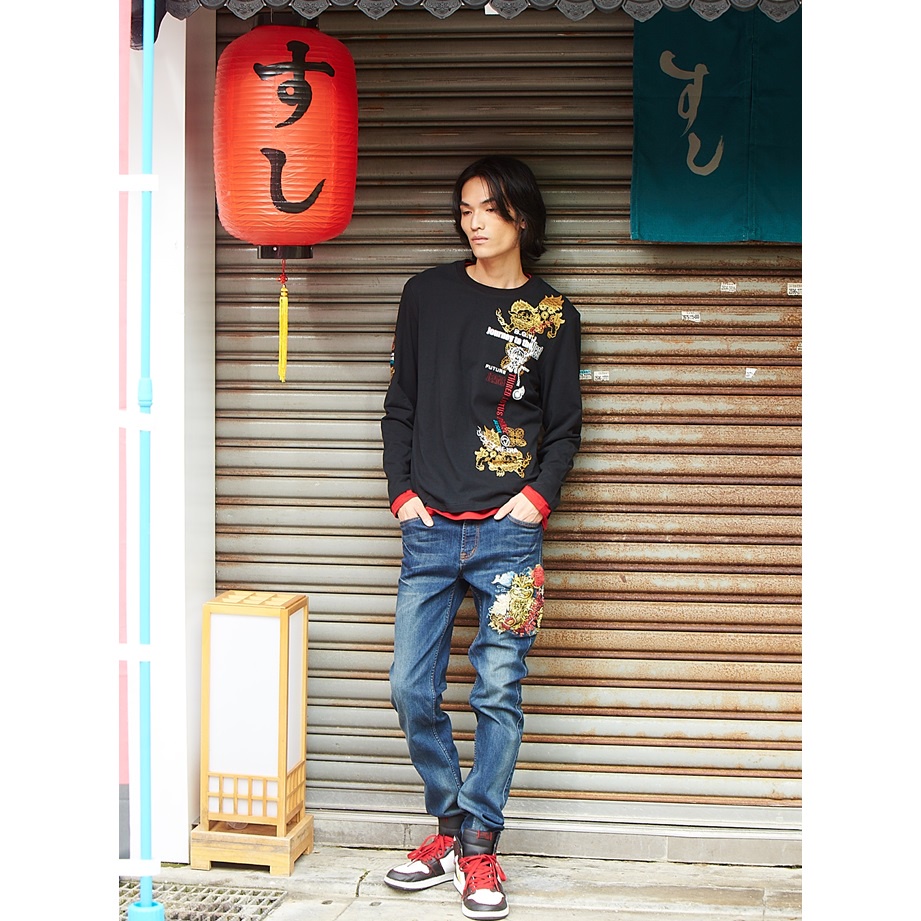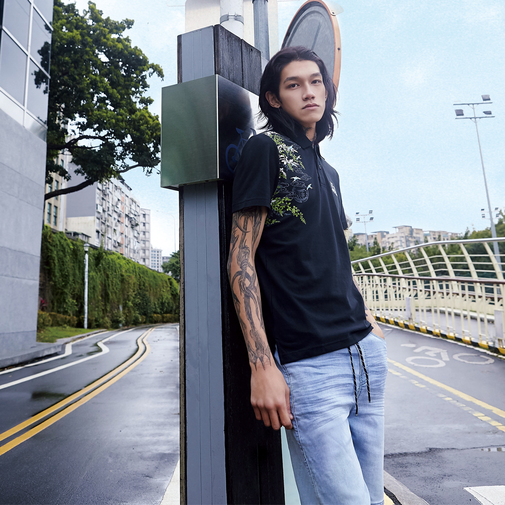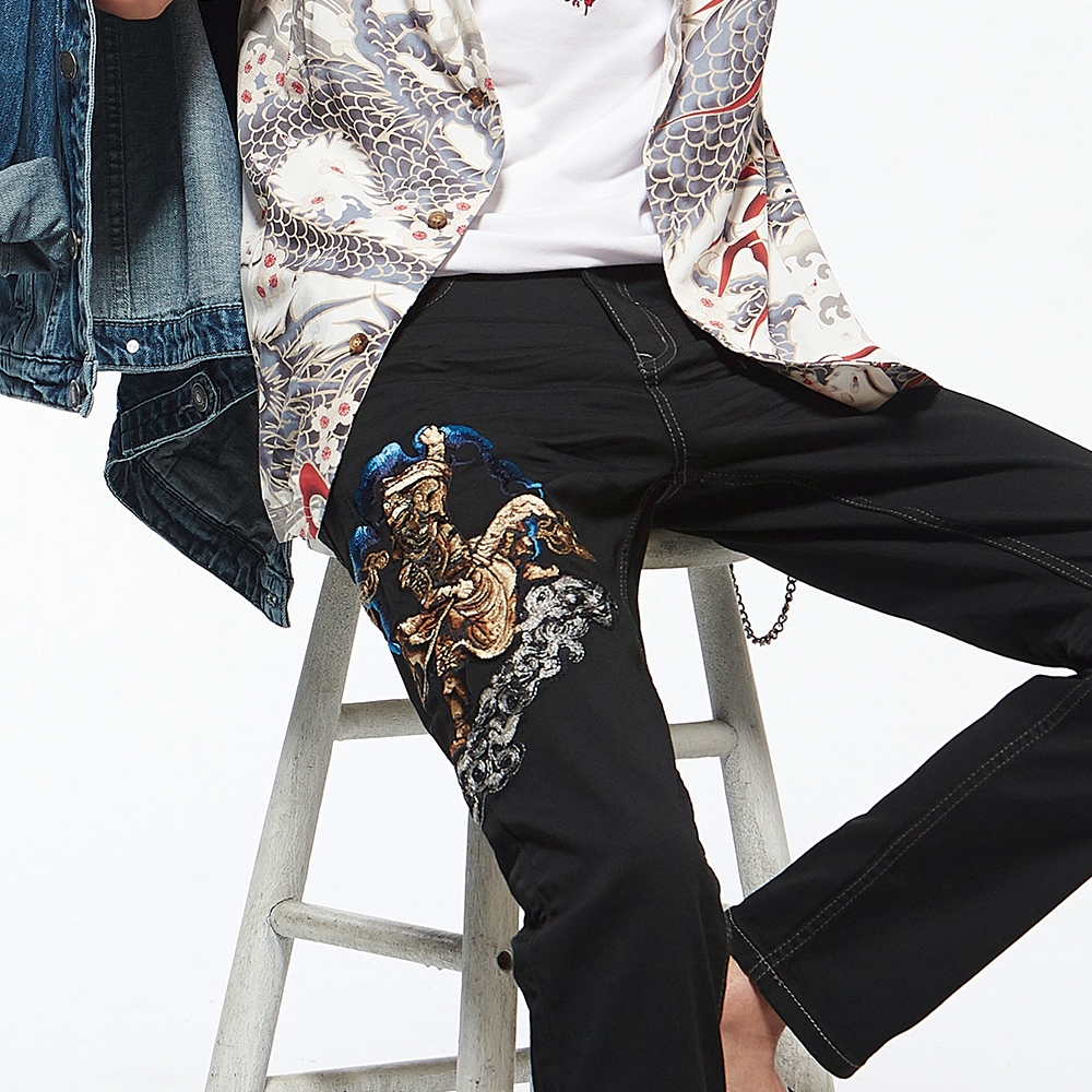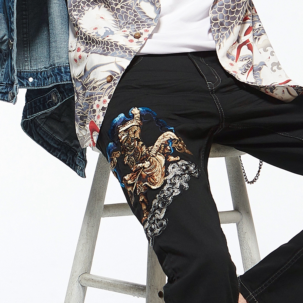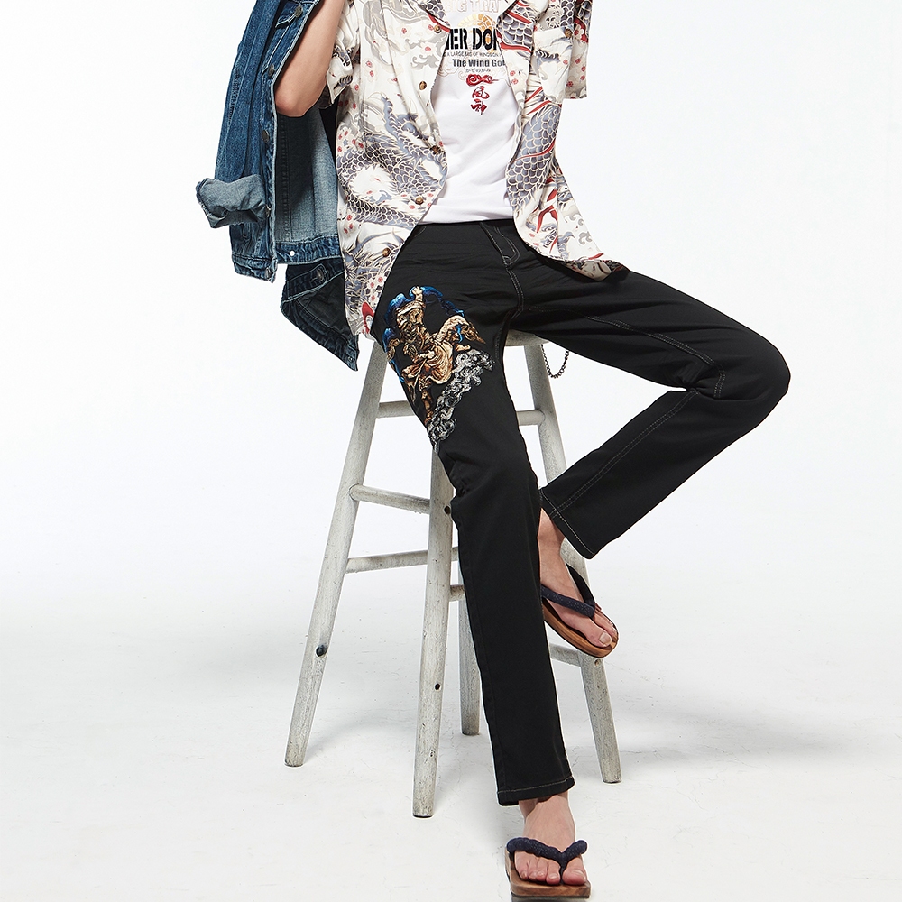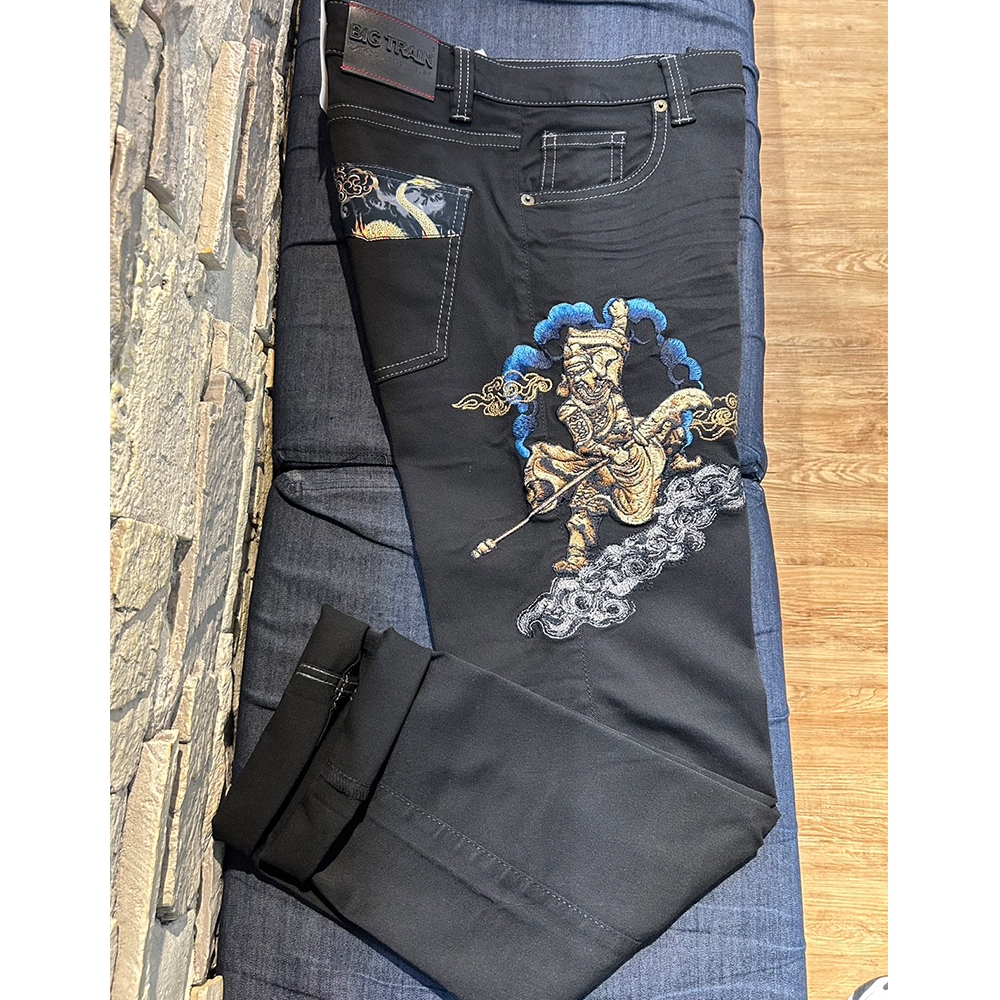 BIG TRAIN 特黑特彈舒適關公刺繡小直筒 黑BM72902L|3L|M|L|XLPantsBIG TRAIN 官方旗艦店