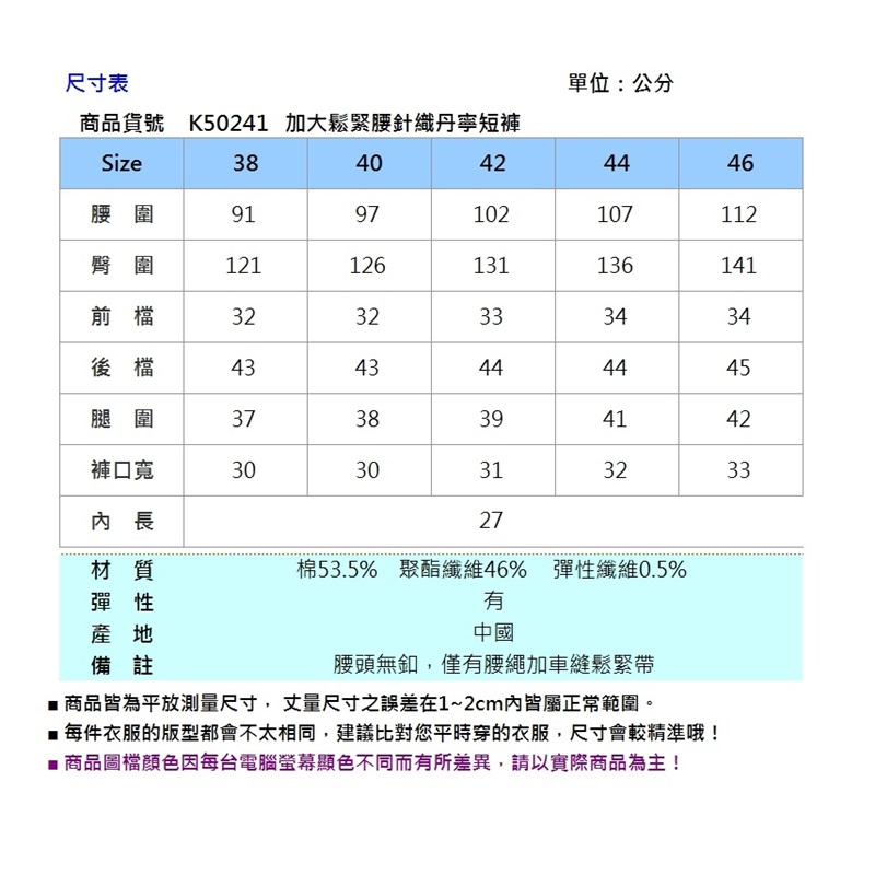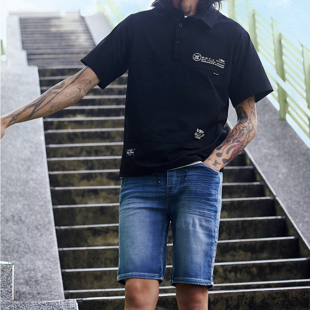 BIG TRAIN 加大鬆緊腰針織丹寧短褲 K50241-72&78