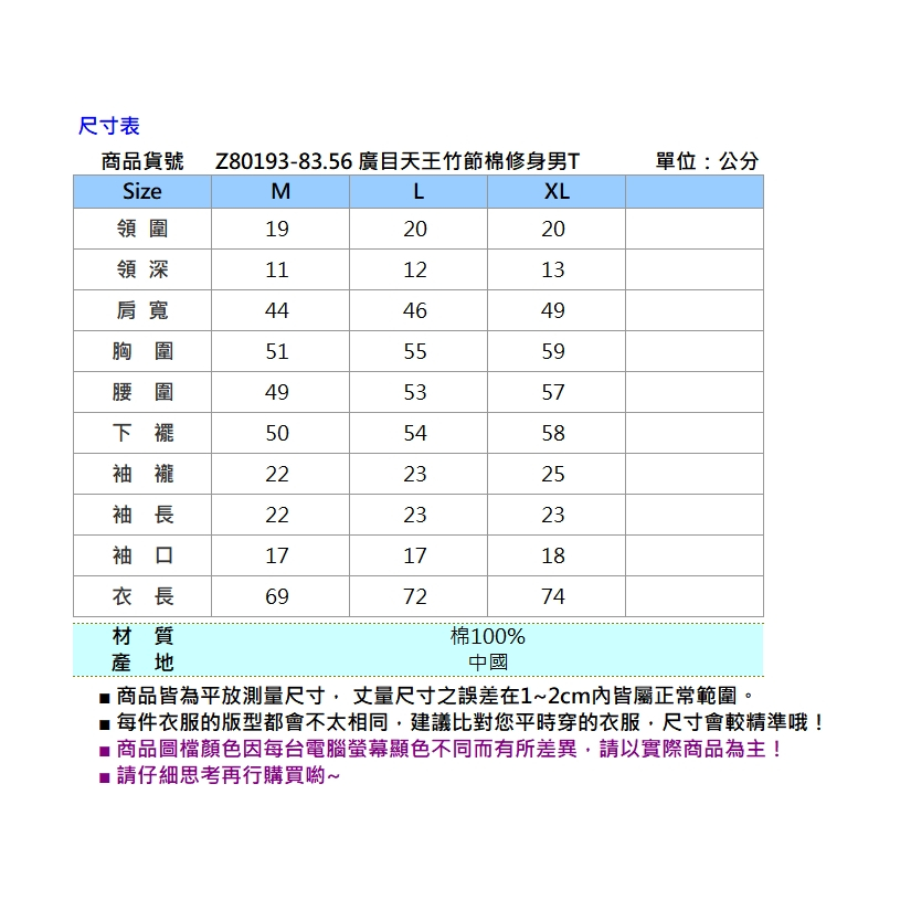 BIG TRAIN 廣目天王竹節棉修身男T 藍Z80193M|L|XLT-ShirtsBIG TRAIN 官方旗艦店