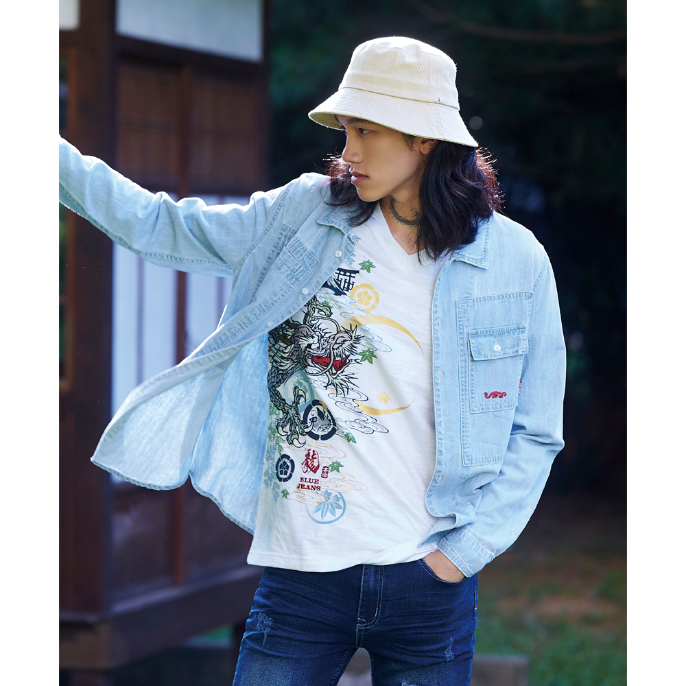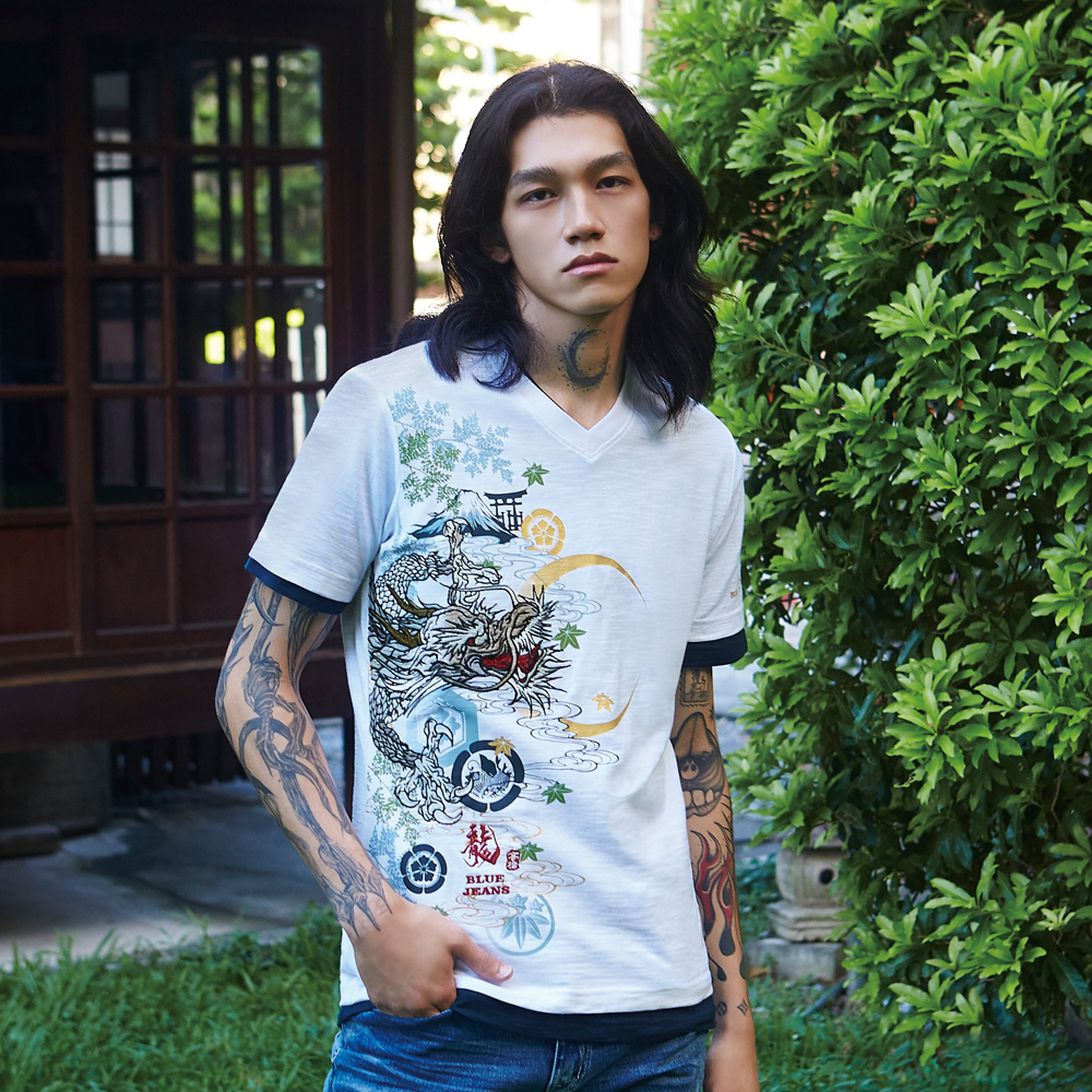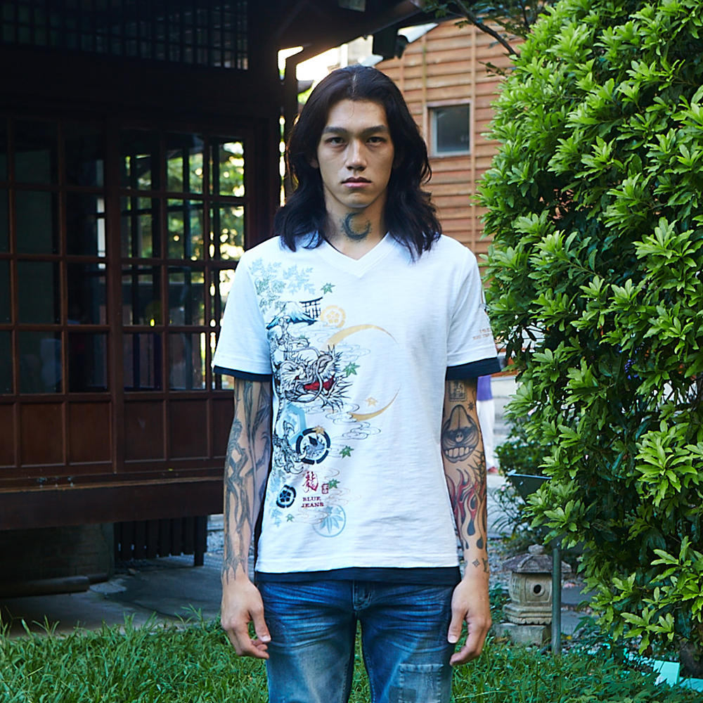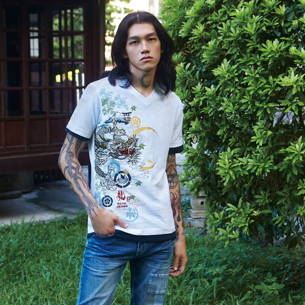 BIG TRAIN弦月神龍竹節棉V領短袖T B20427-80漂白,M|漂白,L|漂白,XLT-ShirtsBIG TRAIN 官方旗艦店