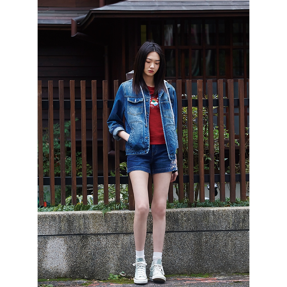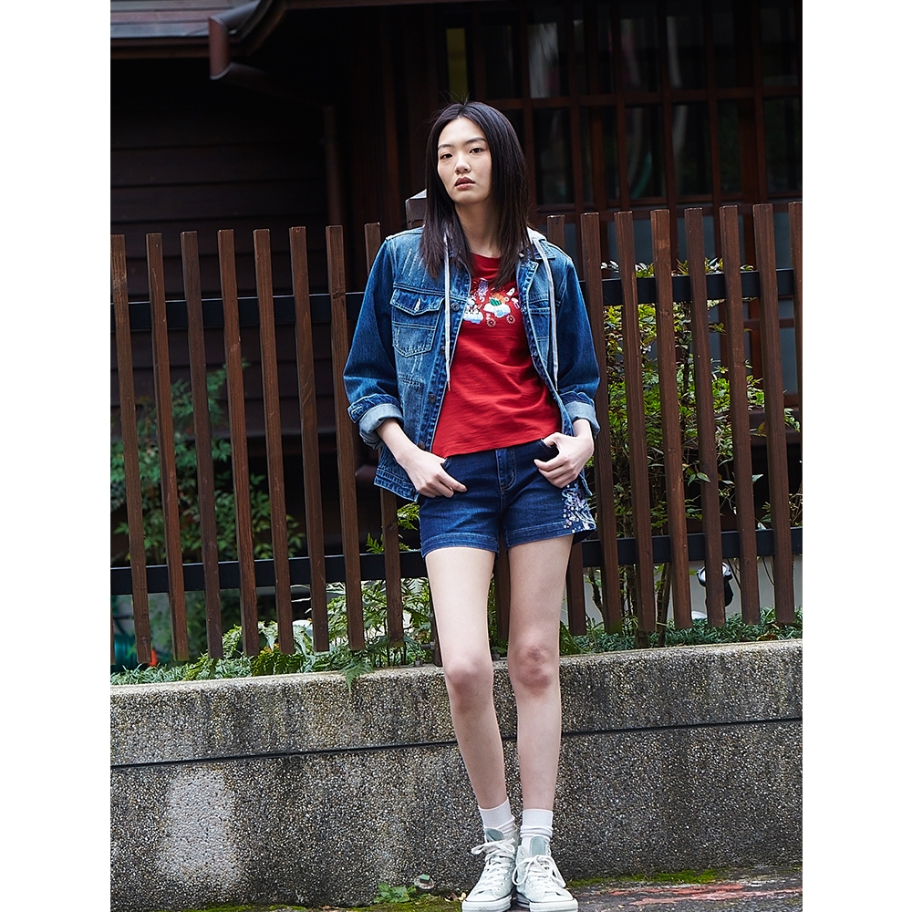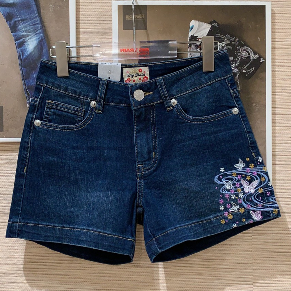 BIG TRAIN 吸排中腰舞蝶刺繡牛仔短褲-B55061-78深藍,S|深藍,M|深藍,L|深藍,XL|深藍,2LShortsBIG TRAIN 官方旗艦店