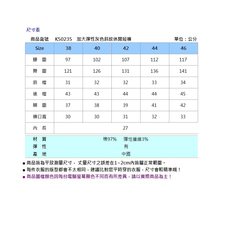 BIG TRAIN加大彈性灰色斜紋休閒短褲-K50235-83灰,38|灰,40|灰,42|灰,44|灰,46BIG TRAIN 官方旗艦店