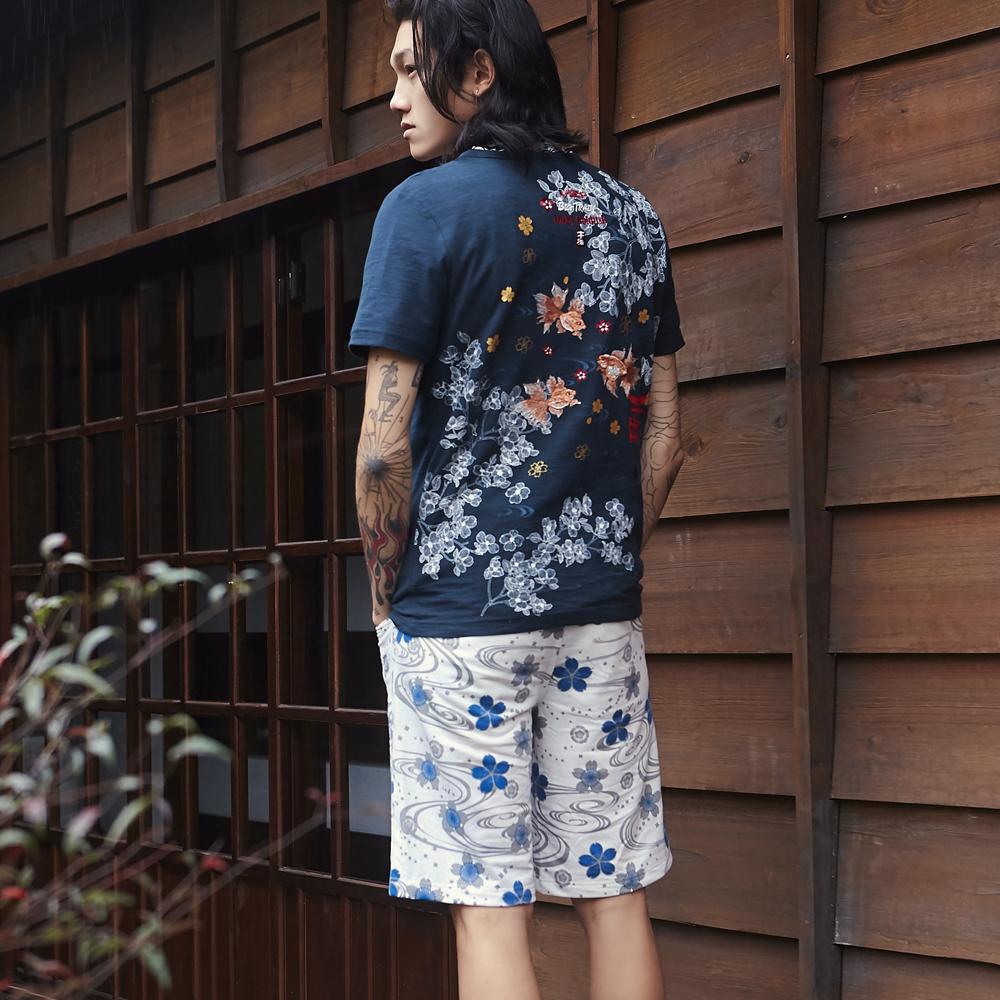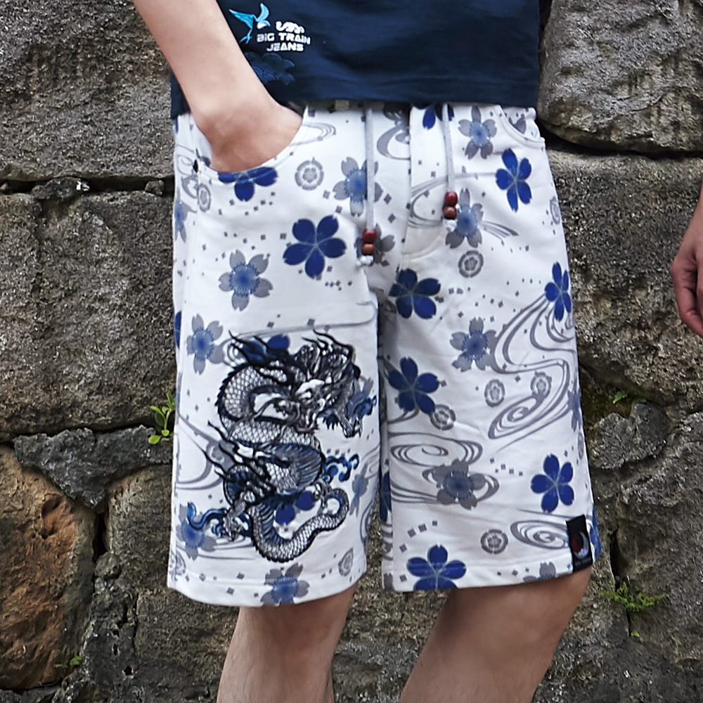 BIG TRAIN 雲龍刺繡流水印針織短褲 B50244-80白,S|白,M|白,L|白,XL|白,2LBIG TRAIN 官方旗艦店