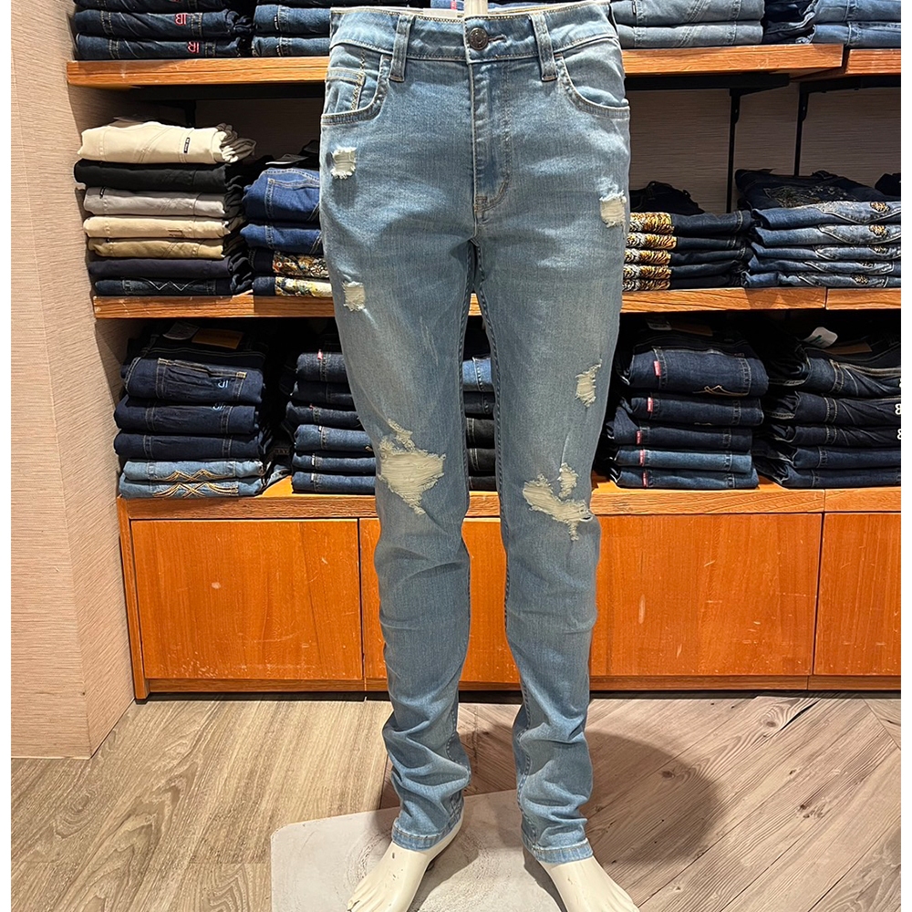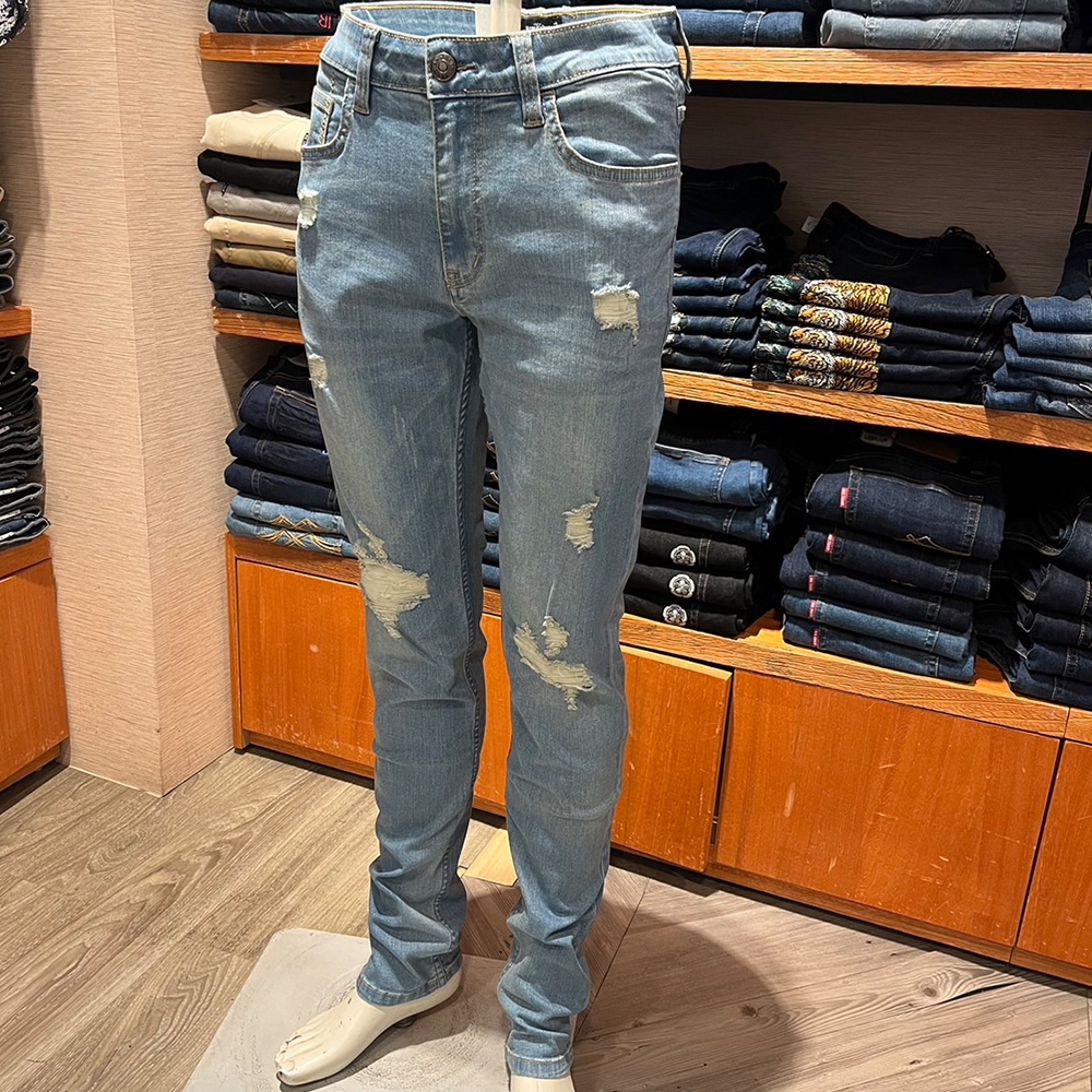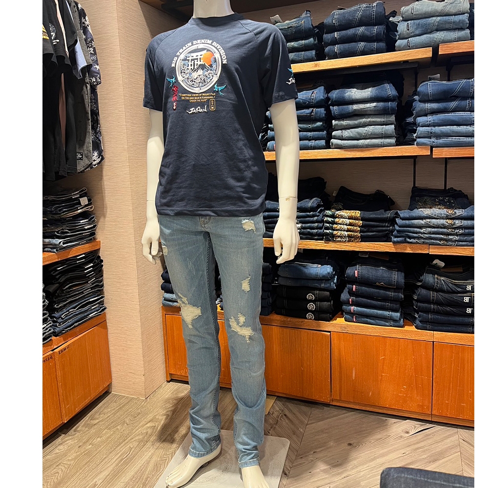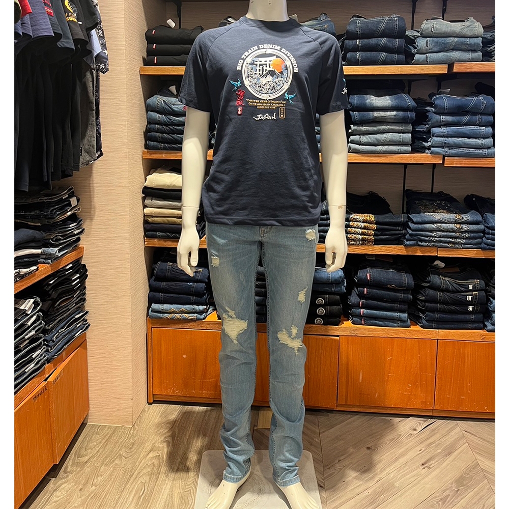 BIG TRAIN 特彈割破水洗剪接小直筒 淺藍BM7298S|M|L|XL|2L|3LBIG TRAIN 官方旗艦店