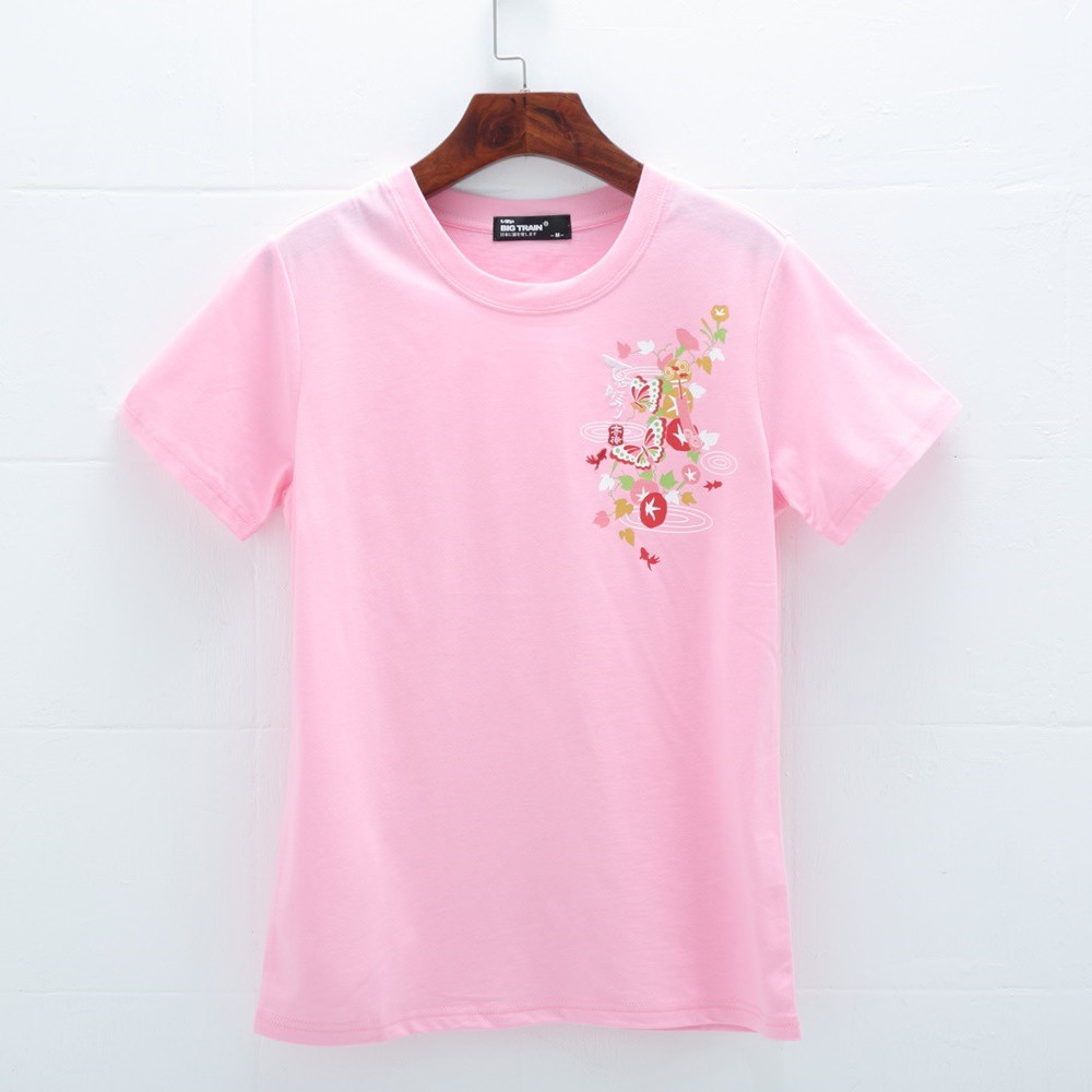 BIG TRAIN 蝴蝶花舞全棉修身女T 粉紅-Z85092-10S|M|LT-shirtsBIG TRAIN 官方旗艦店
