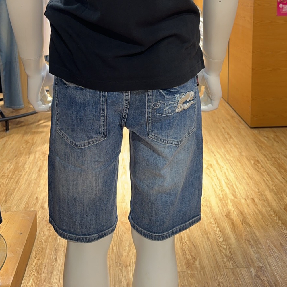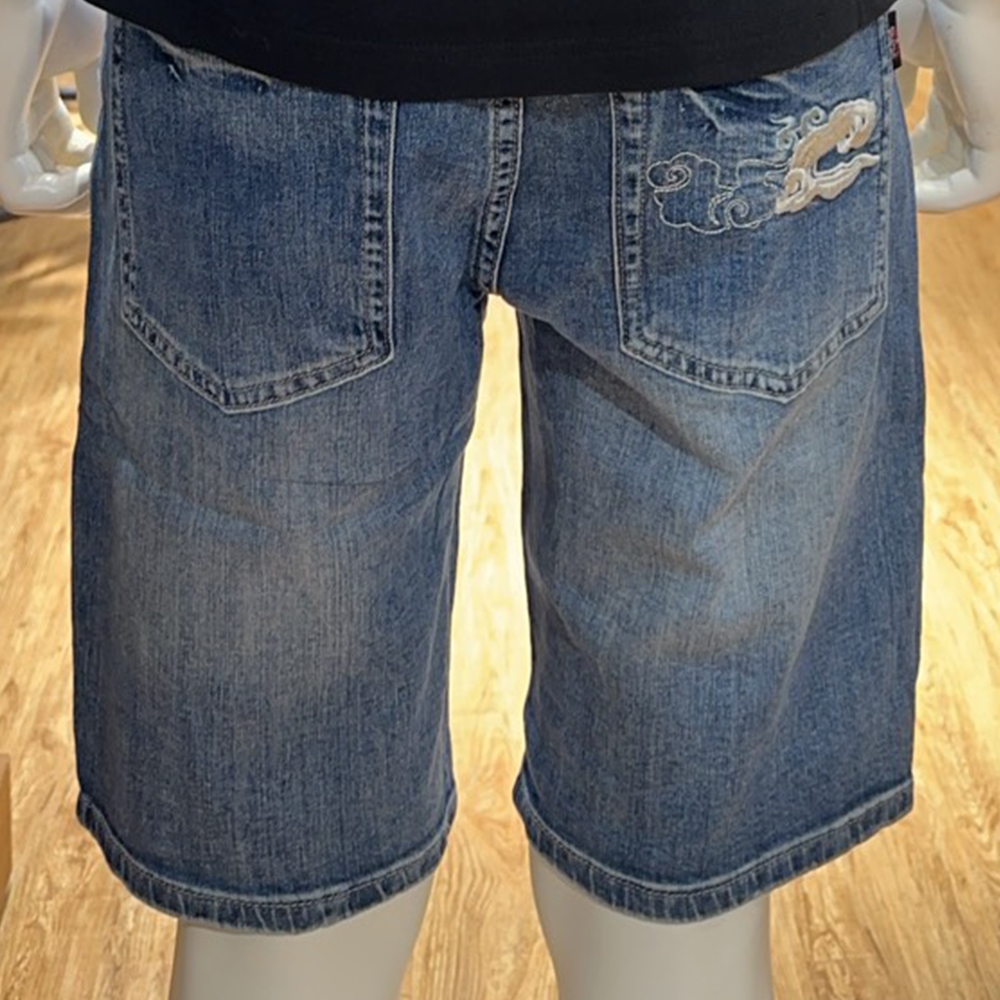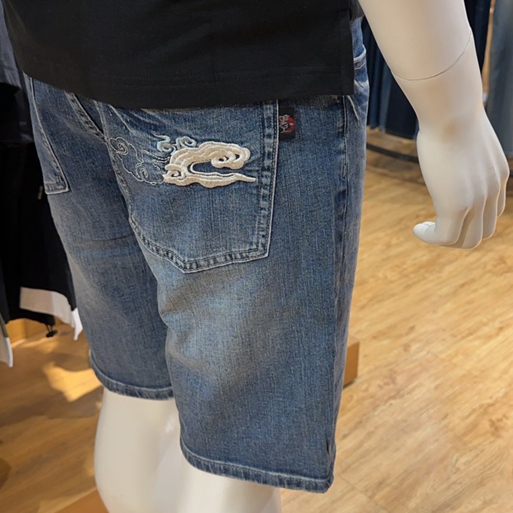 BIG TRAIN 微彈墨雲繡花牛仔短褲-Z50015-75L,中藍|XL,中藍|2L,中藍|S,中藍|M,中藍BIG TRAIN 官方旗艦店