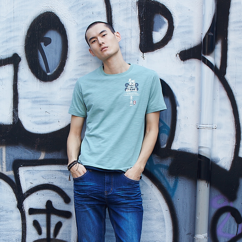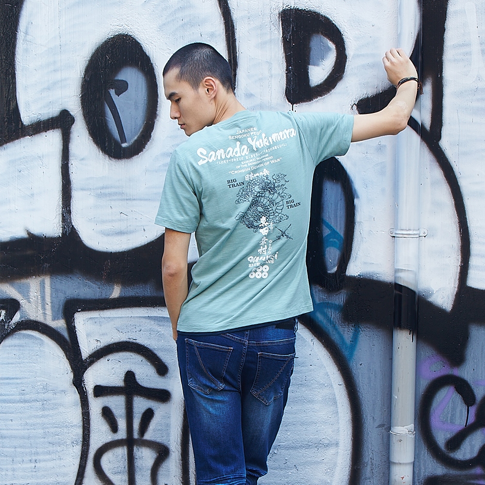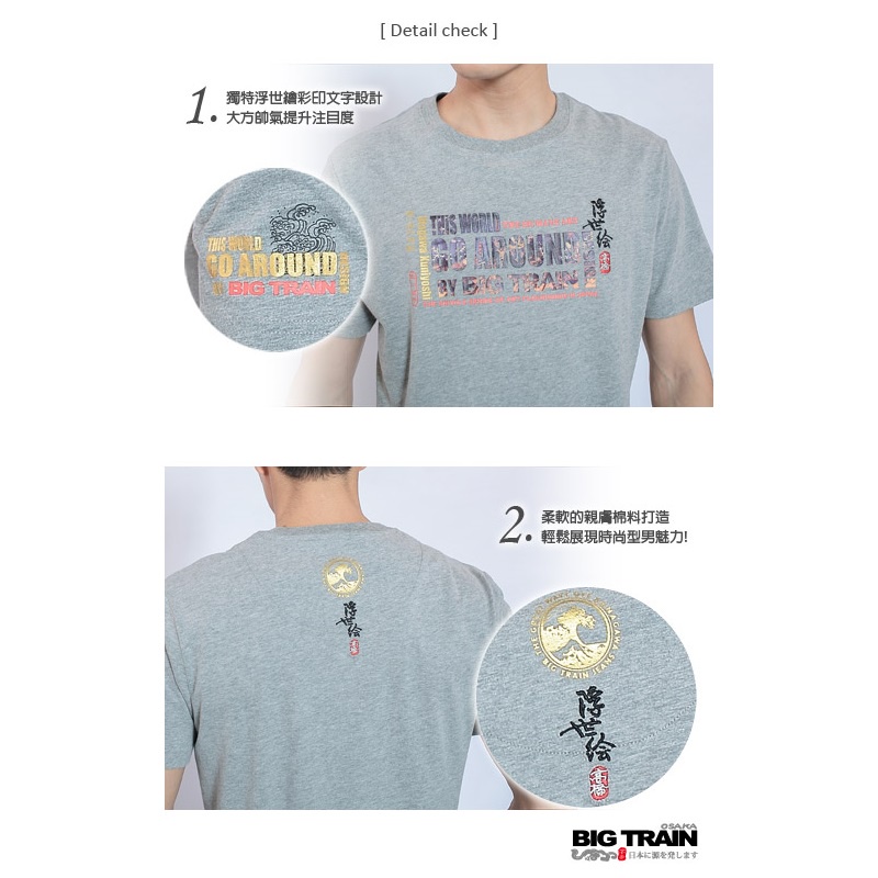 BIG TRAIN浮世繪彩印文字圓領T-B80617-83灰,S|灰,M|灰,L|灰,XLT-ShirtsBIG TRAIN 官方旗艦店