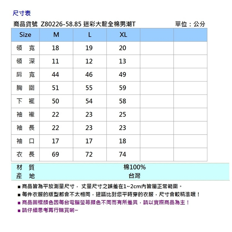 BIG TRAIN 迷彩大龍全棉男潮T Z80226-58&85深灰,L|深灰,XL|丈青,M|丈青,L|丈青,XL|深灰,MT-ShirtsBIG TRAIN 官方旗艦店