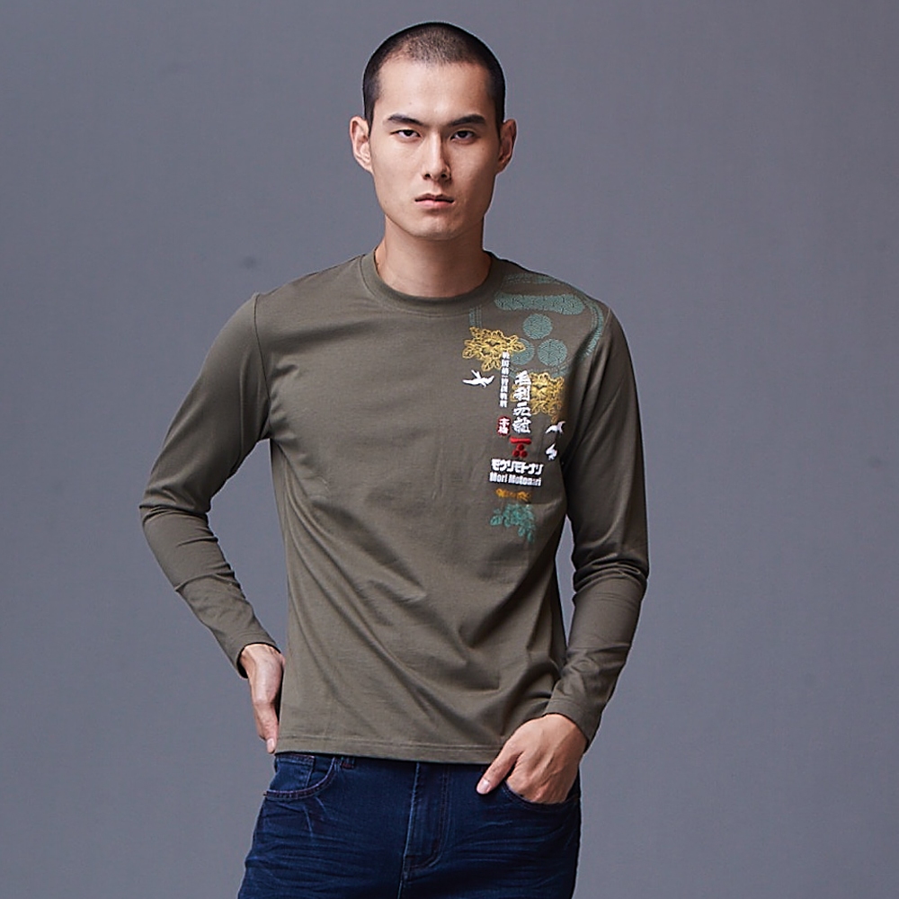 BIG TRAIN加大和風扇舞竹節棉男T-O20277-42&88黑,2L|黑,3L|灰綠,2L|灰綠,3LT-ShirtsBIG TRAIN 官方旗艦店