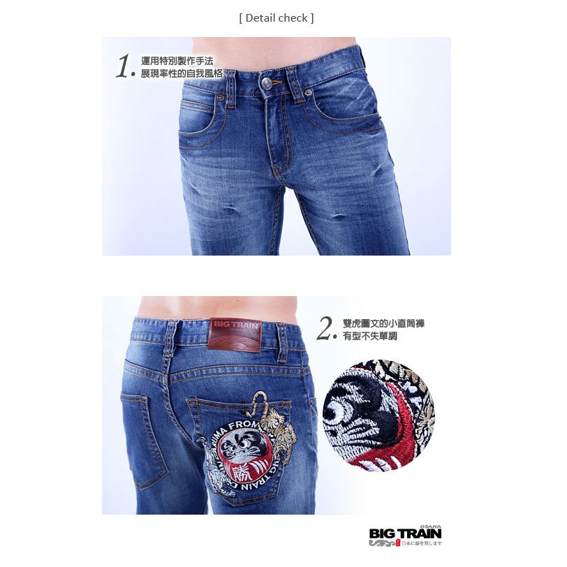 達磨雙虎小直筒褲-ZM7001中藍,S|中藍,M|中藍,L|中藍,XL|中藍,2L|中藍,3LBIG TRAIN 官方旗艦店