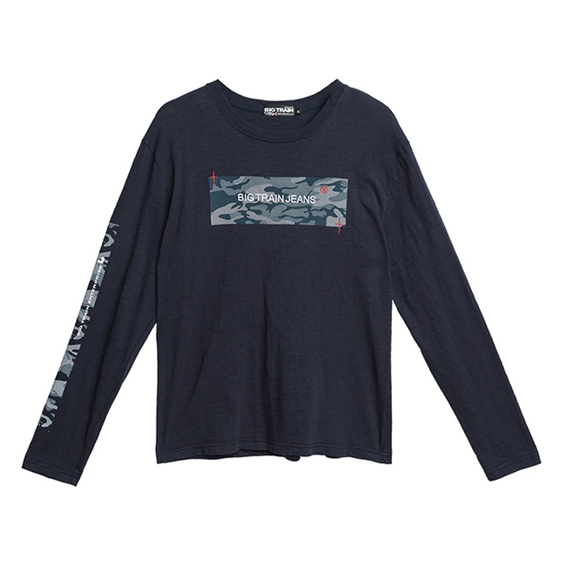 BIG TRAIN迷彩斜紋竹節棉修身男T-丈青-B20387-58丈青,M|丈青,L|丈青,XLT-ShirtsBIG TRAIN 官方旗艦店