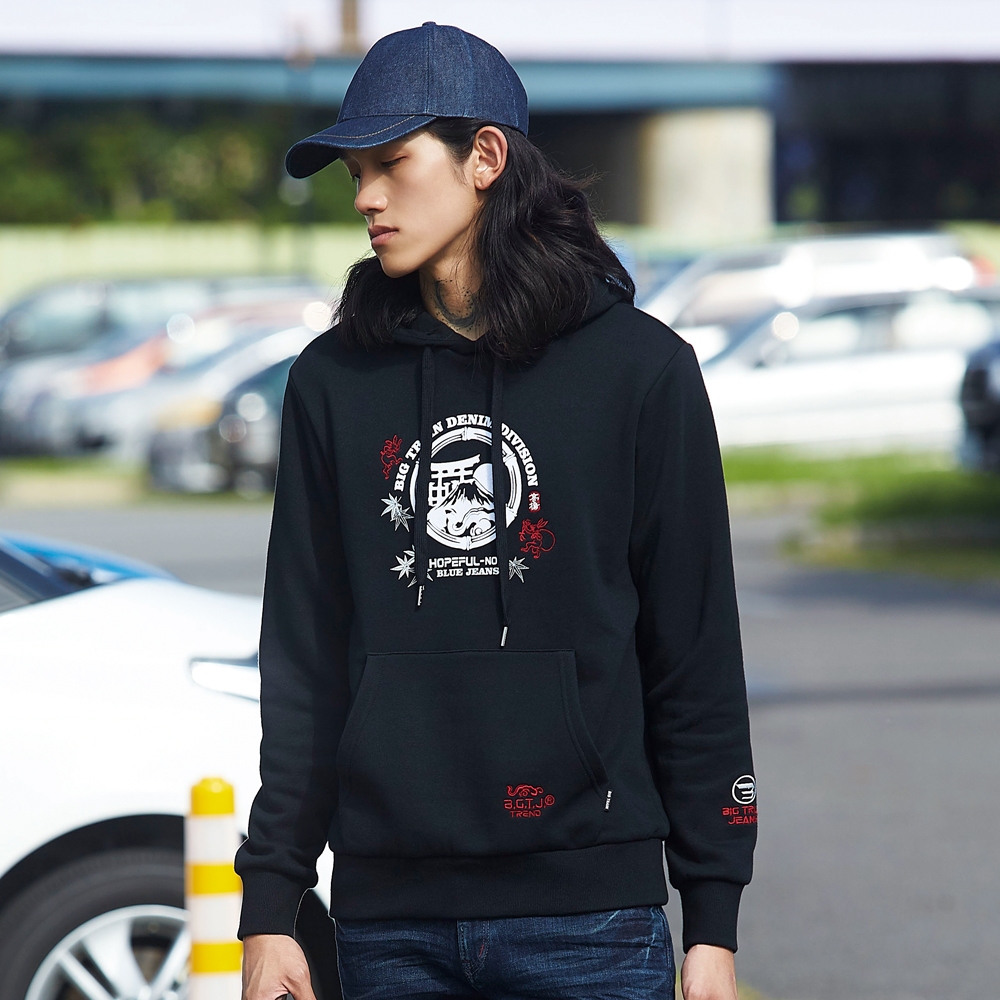 BIG TRAIN楓葉富士連帽內刷毛厚T B20439-88黑,M|黑,L|黑,XLHoodiesBIG TRAIN 官方旗艦店