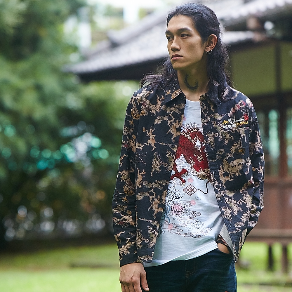 BIG TRAIN加大出雲翔龍竹節棉短袖T-K20449-80&88牙白,2L|牙白,3L|黑,2L|黑,3LT-ShirtsBIG TRAIN 官方旗艦店