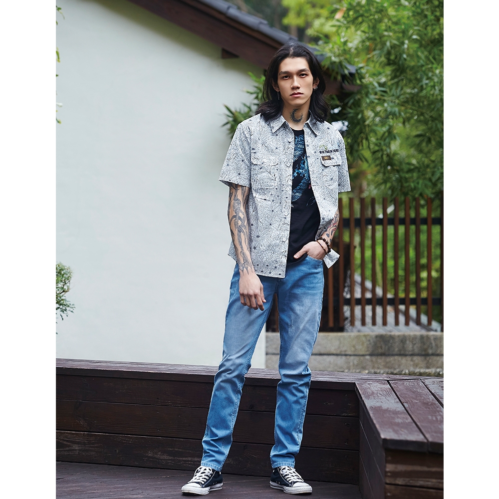 BIG TRAIN 江戶鬼若丸全棉修身男T 淺灰-Z80207-83M|L|XLT-ShirtsBIG TRAIN 官方旗艦店