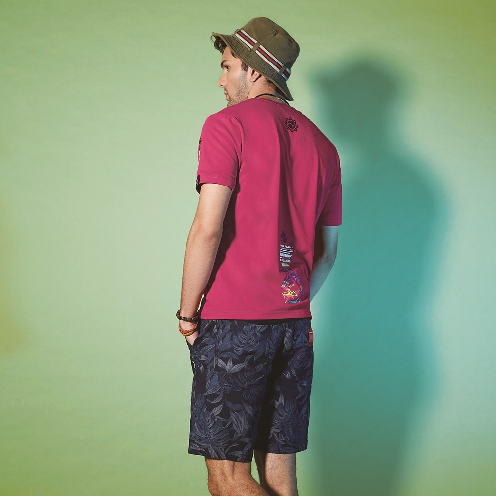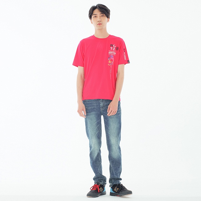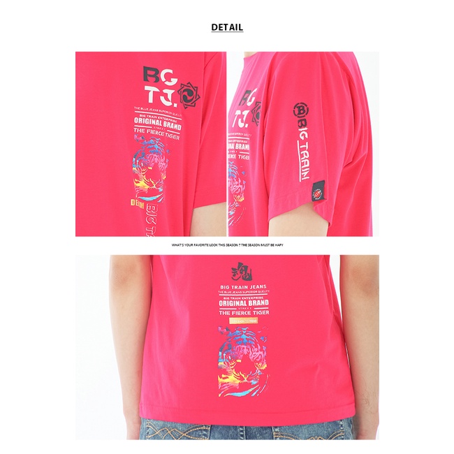 BIG TRAIN 噴印虎魂彈性修身T-桃紅B80723-18XL|M|LT-ShirtsBIG TRAIN 官方旗艦店