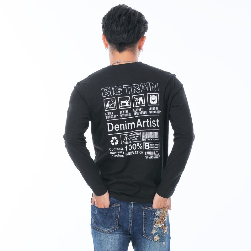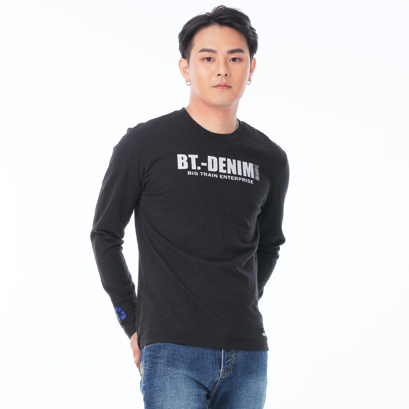 BIG TRAIN單寧條碼全棉基本男T-黑-Z20245-88黑,M|黑,L|黑,XLT-ShirtsBIG TRAIN 官方旗艦店