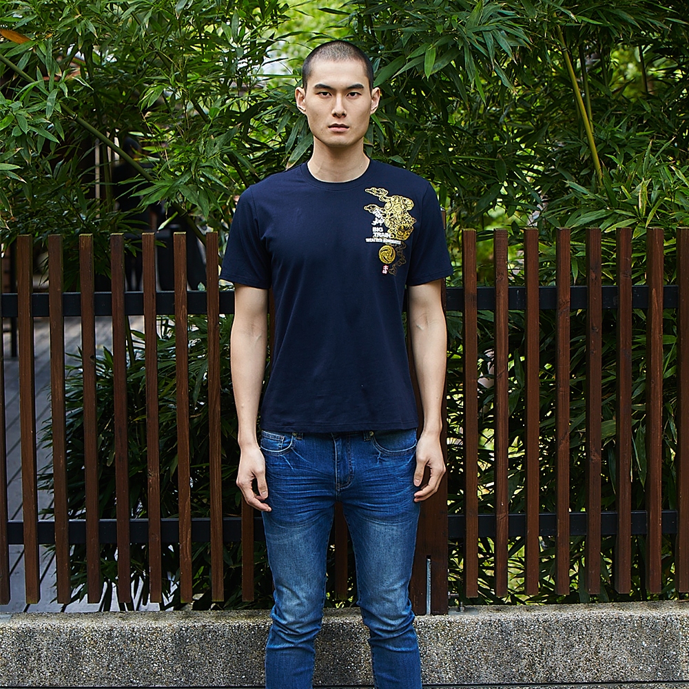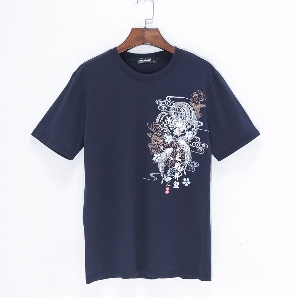 BIGTRAIN加大天龍昇鯉全棉男潮T-O80253-58丈青,3L|丈青,2LT-ShirtsBIG TRAIN 官方旗艦店