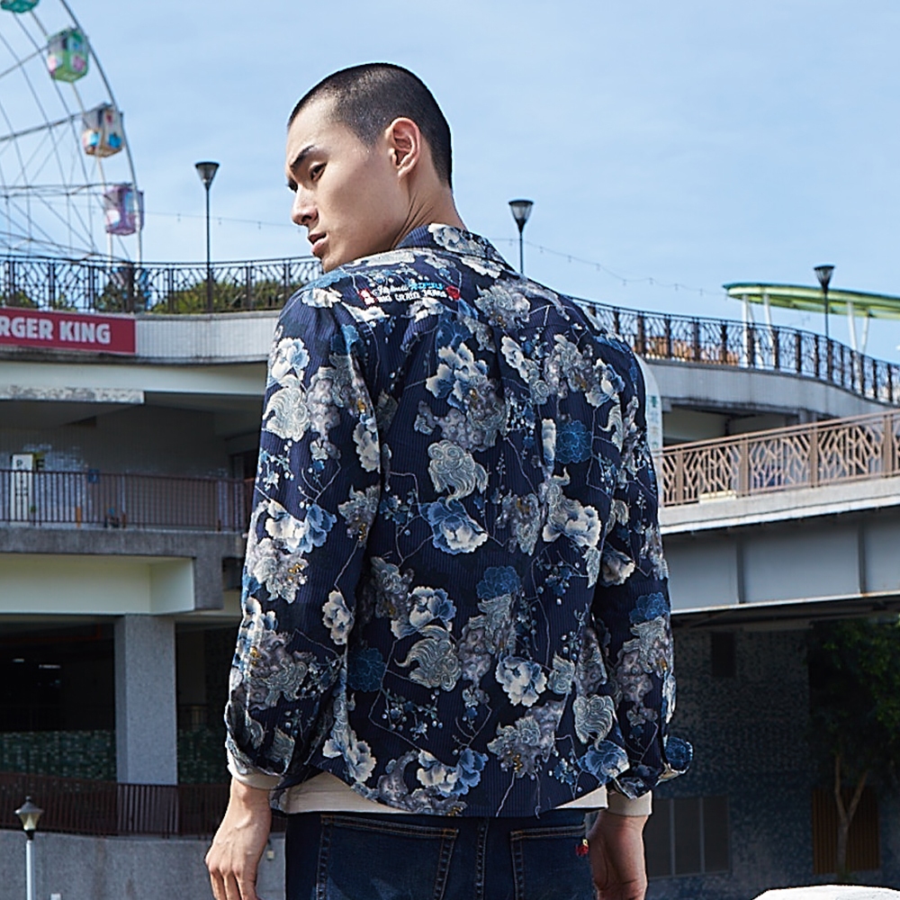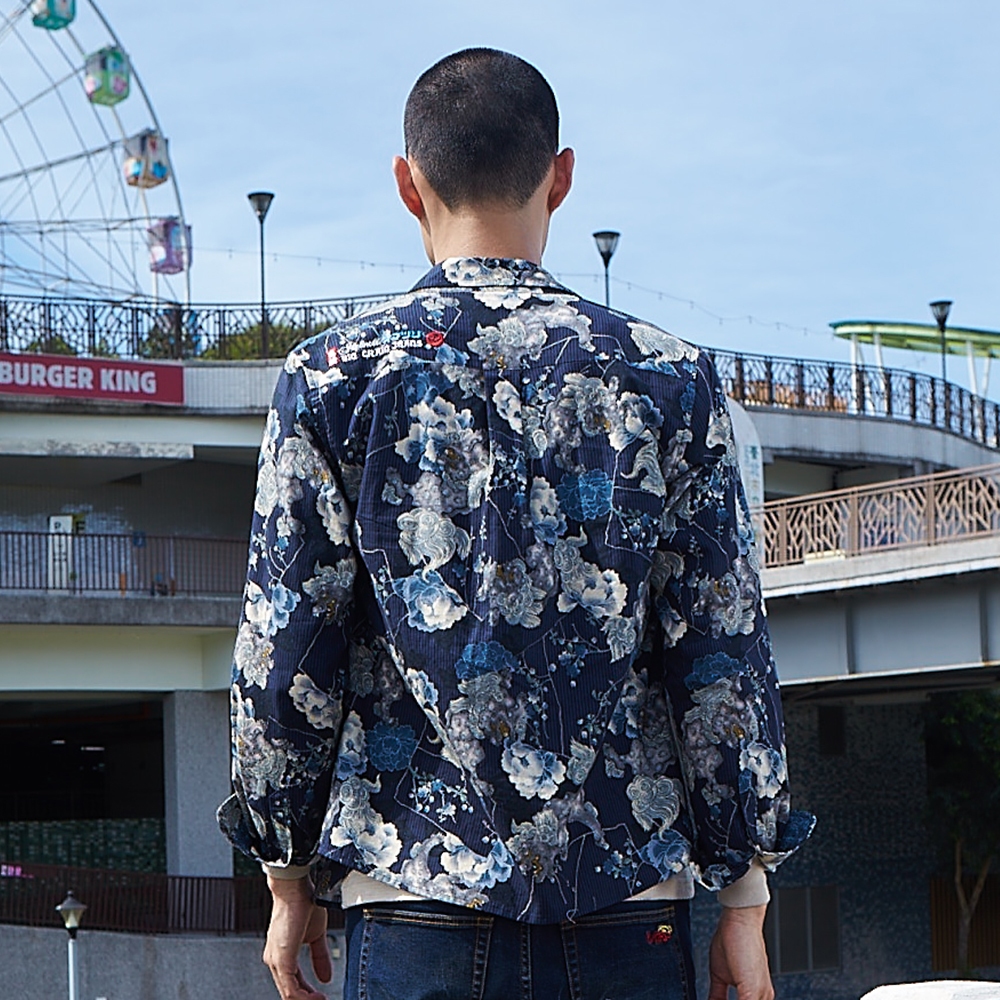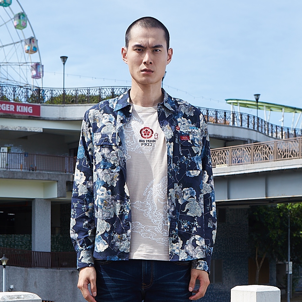 BIG TRAIN牡丹唐獅日式印花襯衫-B10093-56深藍,XL|深藍,M|深藍,LShirtsBIG TRAIN 官方旗艦店