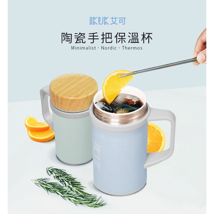 IKUK 艾可 陶瓷保溫杯 瓷芯手把杯 500ml /水瓶 環保杯 陶瓷 隨行杯 冰壩杯 保溫瓶 珍奶 中藥 咖啡杯北歐綠|勿忘草藍|鋼鐵灰Water Bottles & AccessoriesBialetti官方旗艦店 OUTLET_IKUK