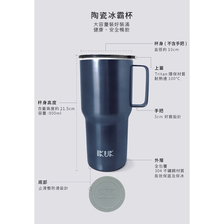 IKUK艾可 陶瓷手把保溫杯 900ml /水瓶 環保杯 吸管杯 冰壩杯 拿鐵 保溫瓶 大象杯 珍奶 隨行杯 咖啡杯手把珍奶杯 900 mlWater Bottles & AccessoriesBialetti官方旗艦店 OUTLET_IKUK