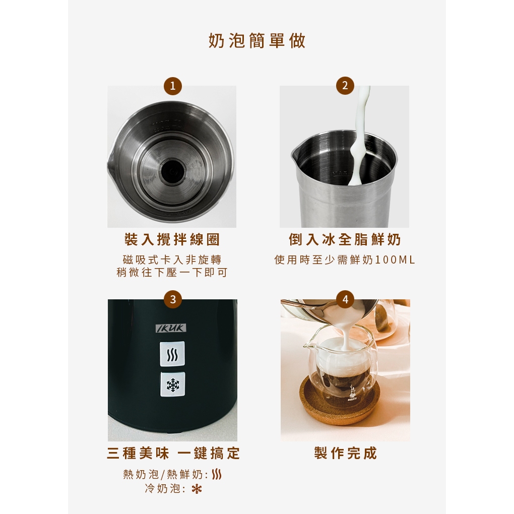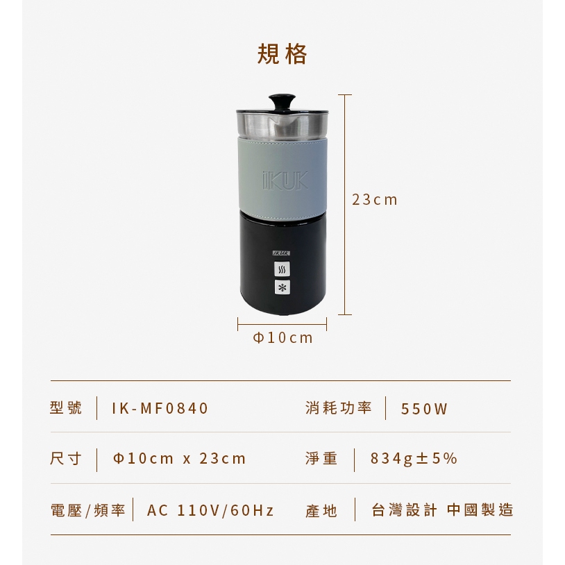 IKUK 分離式電動奶泡機 840ml 送 兩用保溫保冷提袋 / 大容量 立體拉花 OK咖啡色奶泡機|綠色奶泡機|藍色奶泡機Tea, Coffee & Bartending EquipmentsBialetti官方旗艦店 OUTLET_IKUK