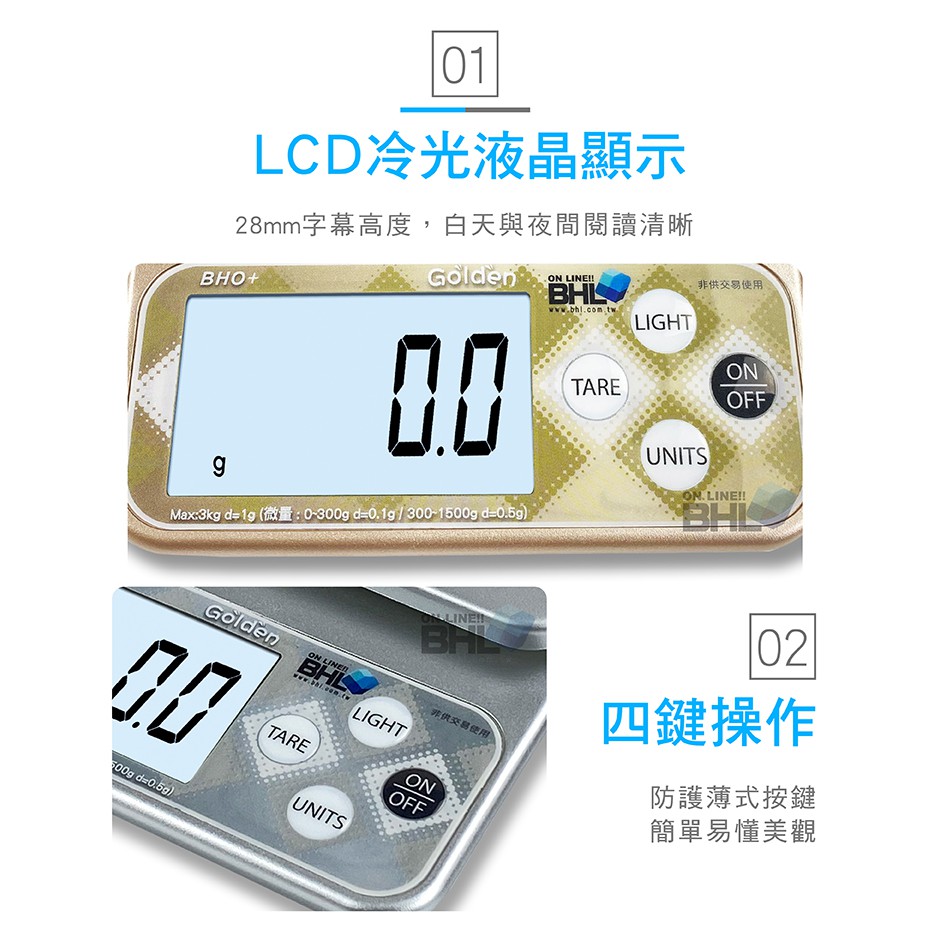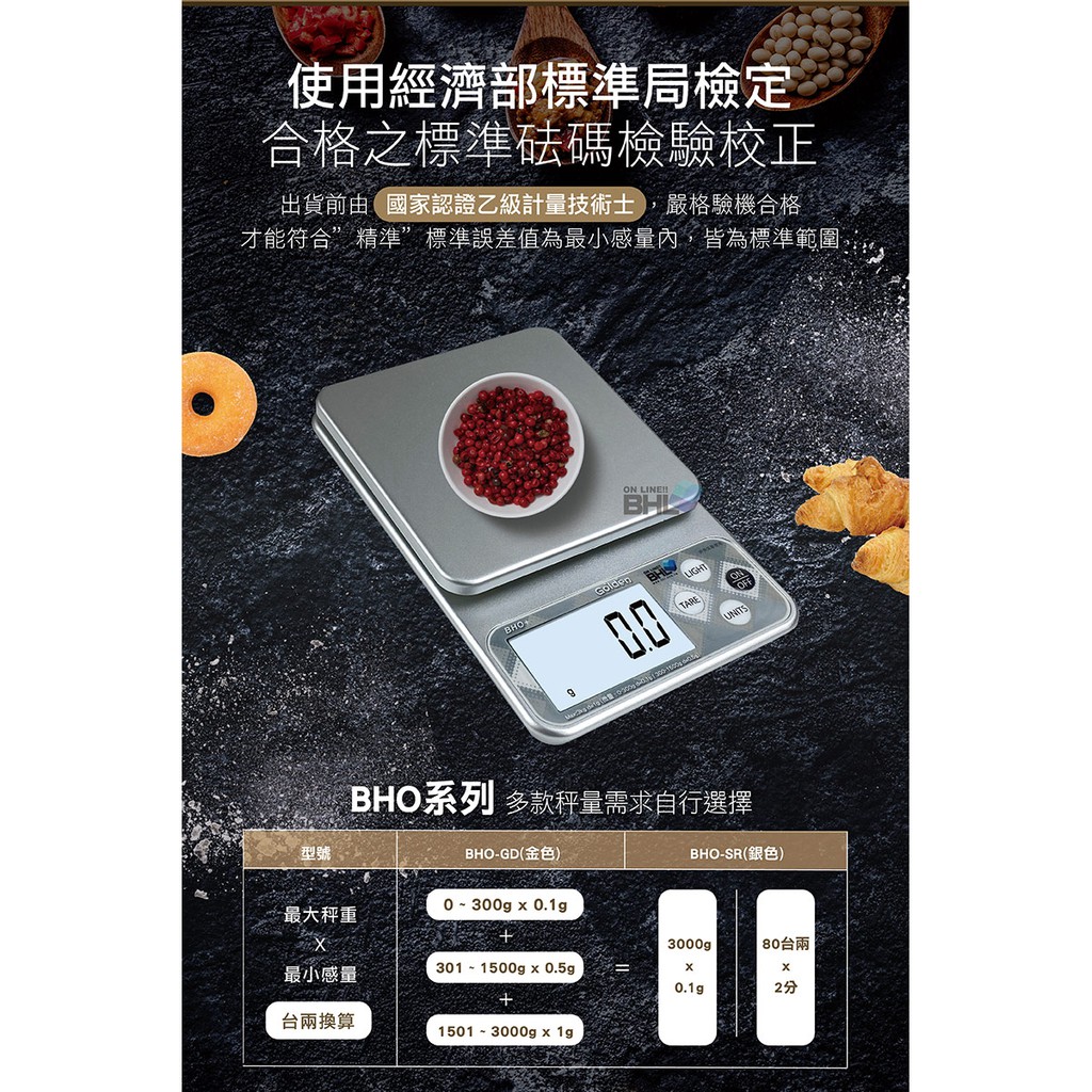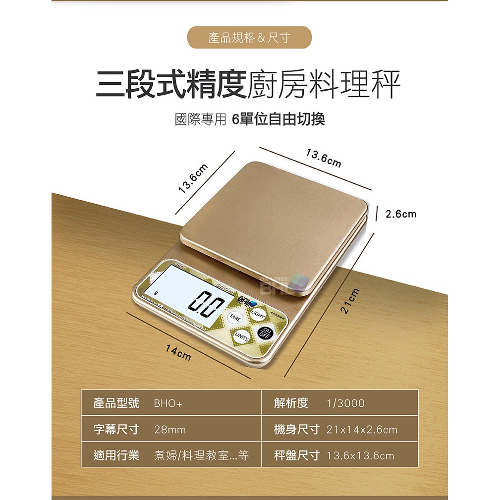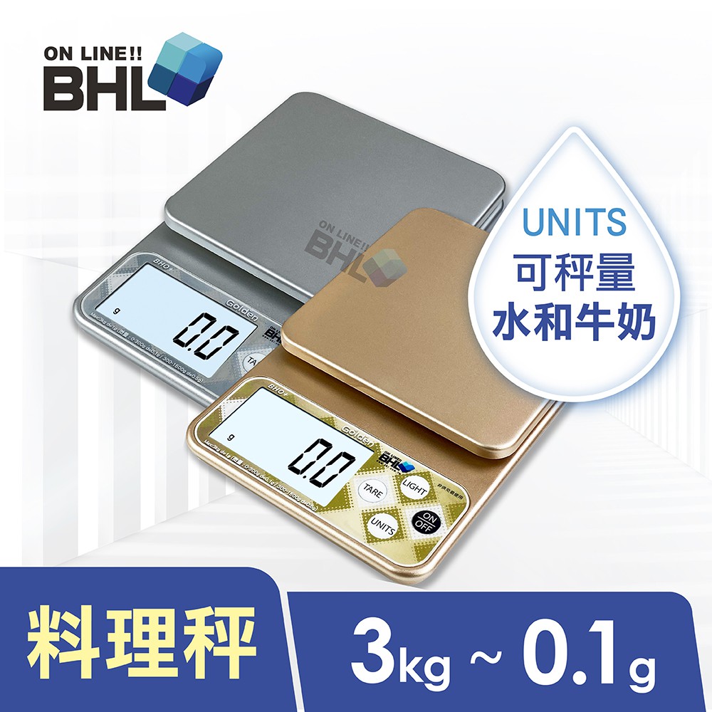 【BHL秉衡量電子秤】BHO+三段式精度電子秤3kg 料理秤/電子秤/烘焙秤/可測量液體/酵母/磅秤咖啡秤/磅秤金色|銀色|一單六台(含)以上,請選宅配方式才可寄Kitchen Weighing ScalesBHL秉衡量電子秤
