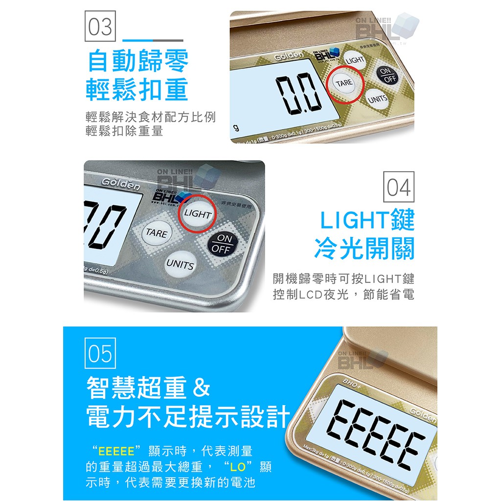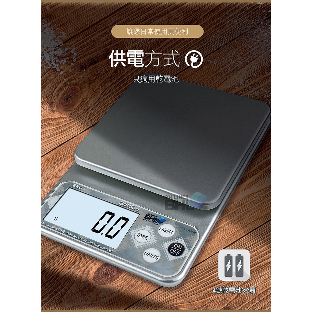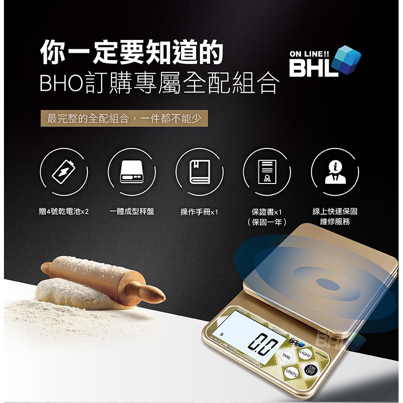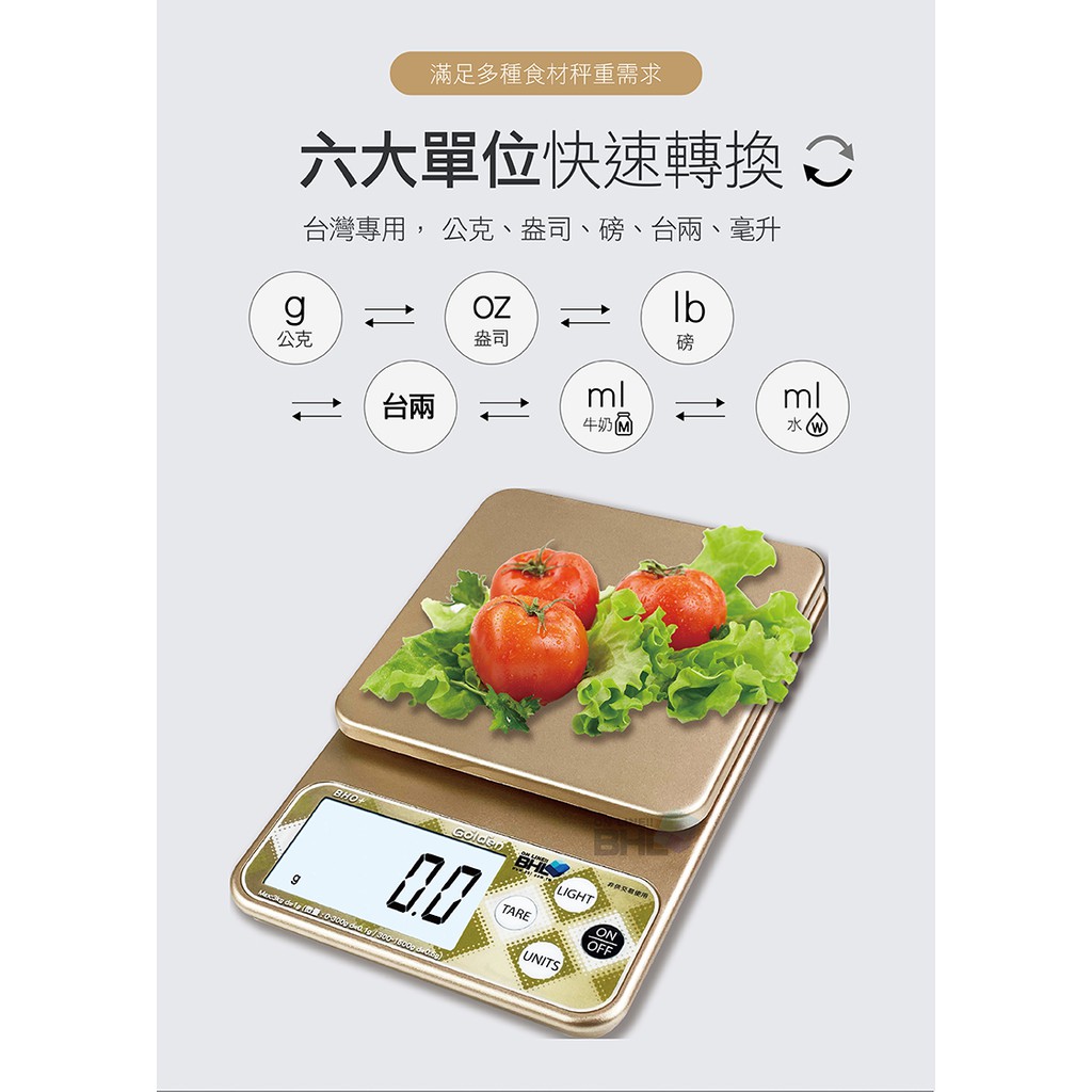 【BHL秉衡量電子秤】BHO+三段式精度電子秤3kg 料理秤/電子秤/烘焙秤/可測量液體/酵母/磅秤咖啡秤/磅秤金色|銀色|一單六台(含)以上,請選宅配方式才可寄Kitchen Weighing ScalesBHL秉衡量電子秤