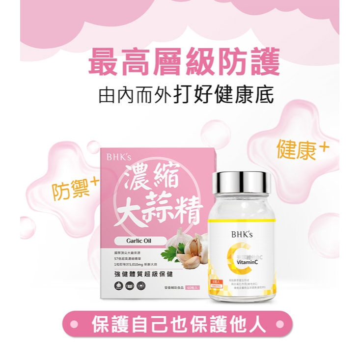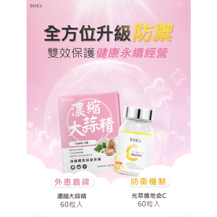 BHK’s 健康防護組 大蒜精(60粒/盒)+維他命C雙層錠(60粒/瓶) 官方旗艦店