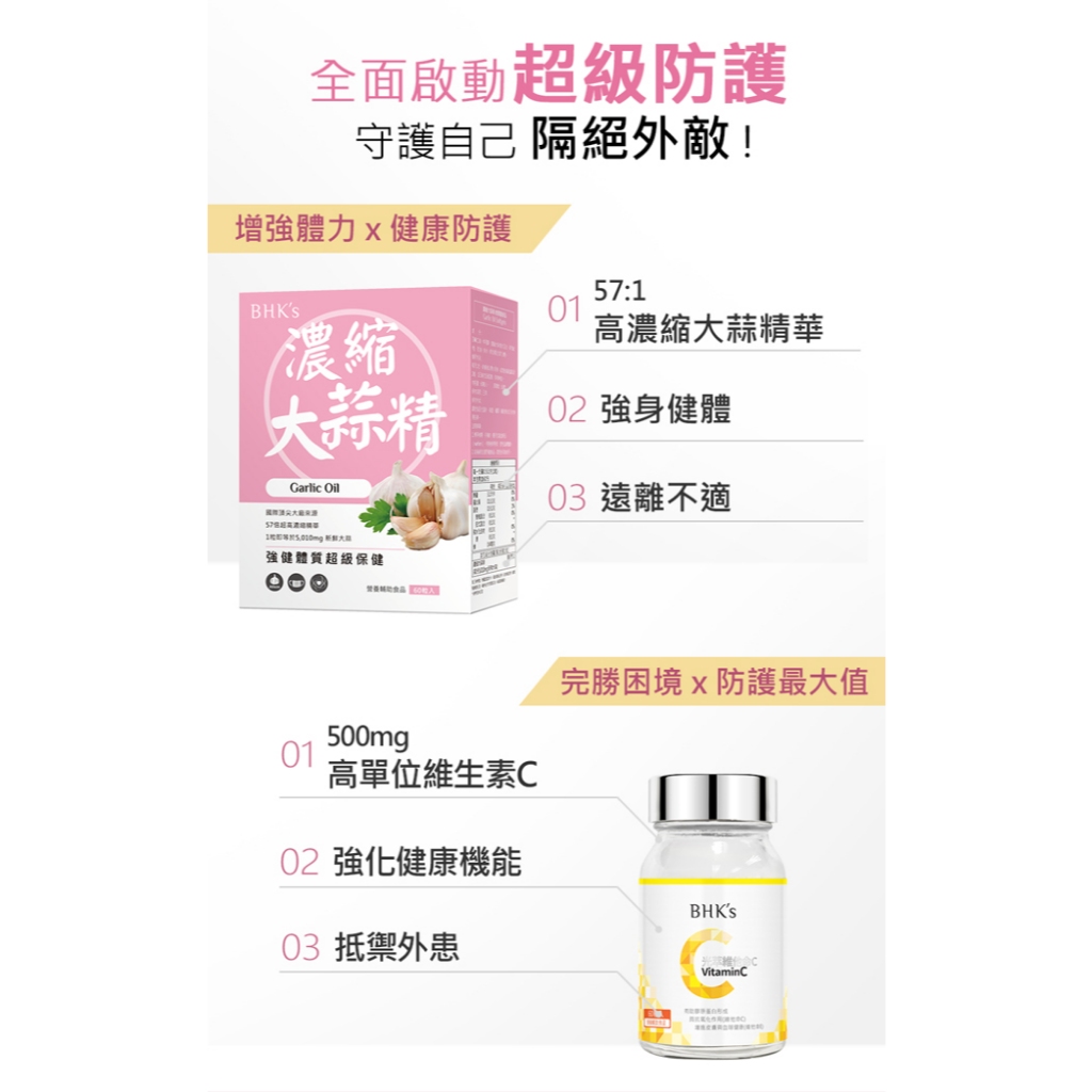 BHK’s 健康防護組 大蒜精(60粒/盒)+維他命C雙層錠(60粒/瓶) 官方旗艦店BHK’s 健康防護組 大蒜精(60粒/盒)+維他命C雙層錠(60粒/瓶) 官方旗艦店Well BeingBHK’s 官方旗艦店