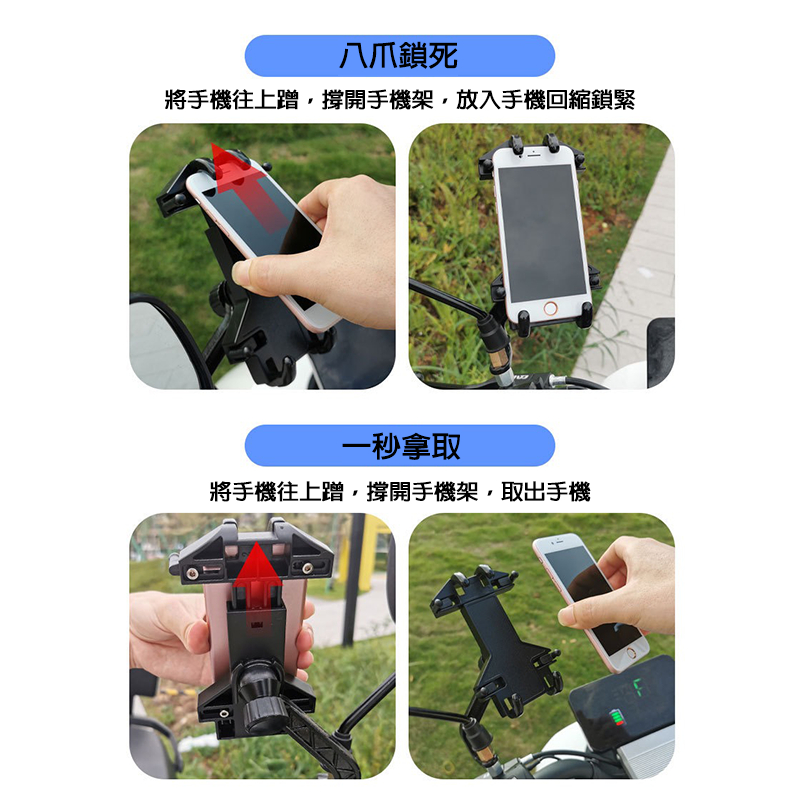 最新升級款 機車 手機支架 八爪伸縮可調 一秒拿取 適用於後視鏡 電動車手機架 摩托車手機架 腳踏車手機架 導航支架八爪-後視鏡款|八爪-車把款Phone Holders【ANYGO】水晶盾 經銷批發旗鑑商城|最專業的手機保護貼配件