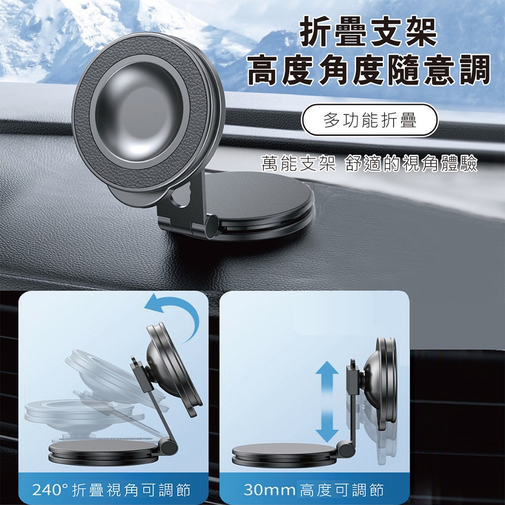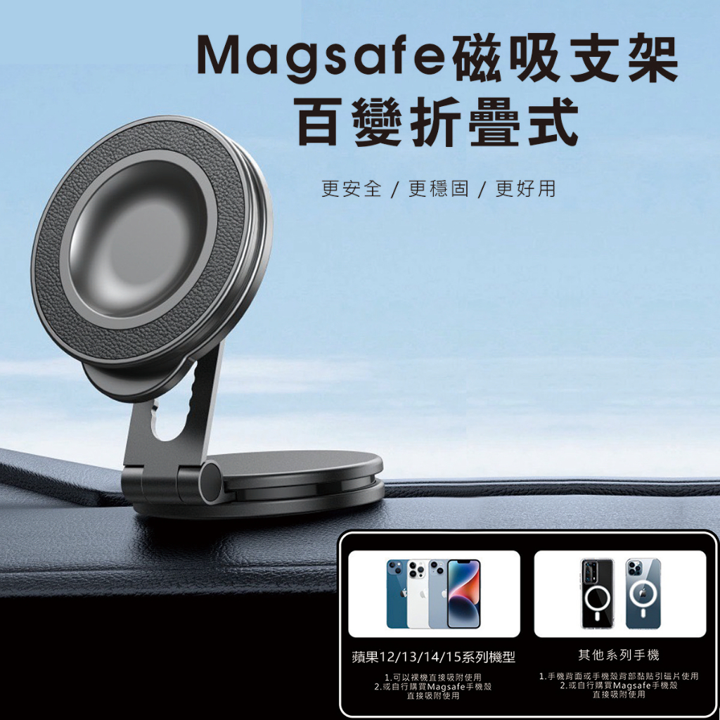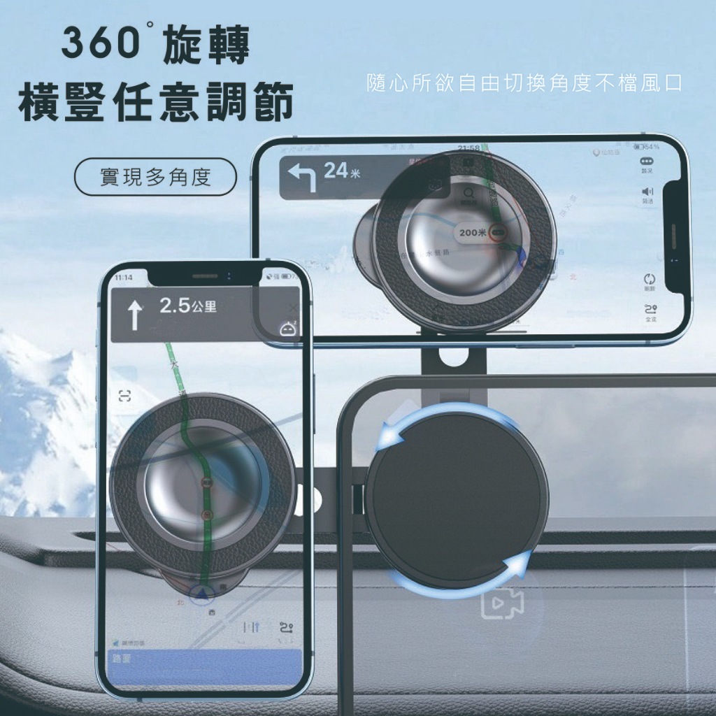 Magsafe磁吸車架 車用磁吸手機架 360度旋轉 適用iPhone全系列 新引力 磁吸車載支架 儀錶板支架 導航支架