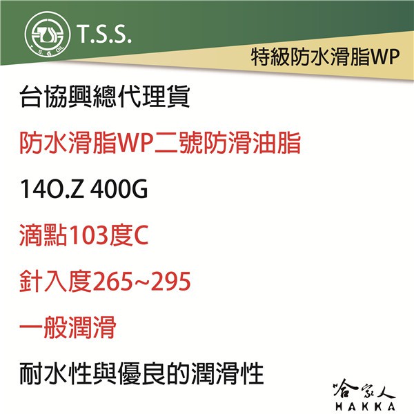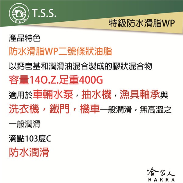 TSS 特級防水油脂 WP 10入 下單區 附發票 防鏽 防水 潤滑 潤滑脂 牛油條 牛條 黃油條 軸承 怪手 哈家人TSS 特級防水油脂 WP 10入 下單區 附發票 防鏽 防水 潤滑 潤滑脂 牛油條 牛條 黃油條 軸承 怪手 哈家人Greases & Lubricants【 哈家人 】油Shop