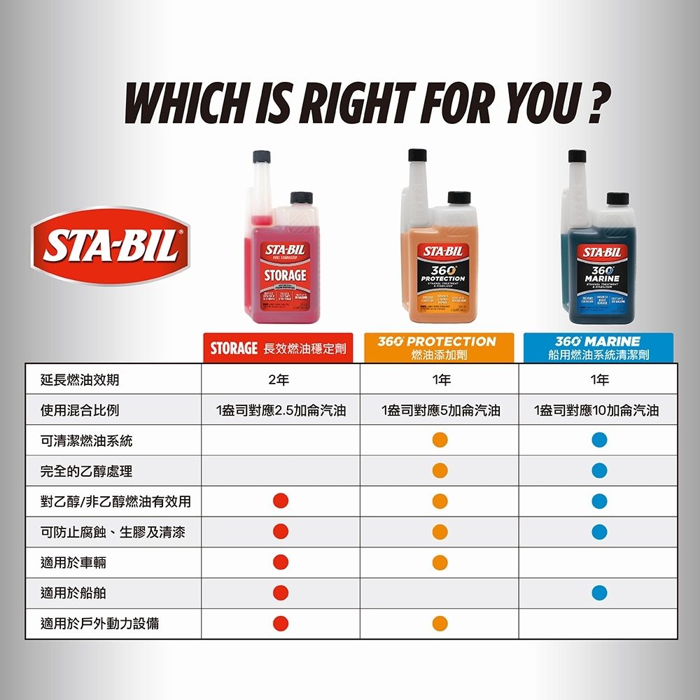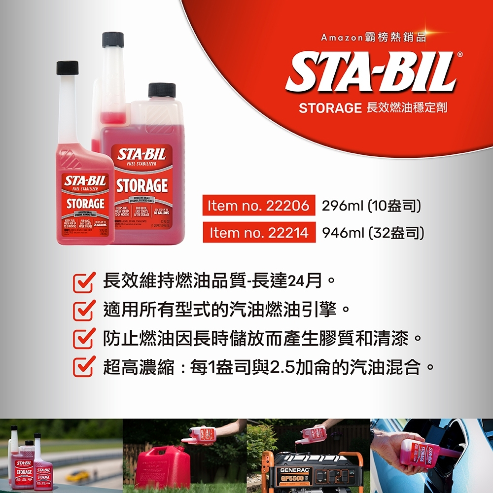 STA-BIL Storage 長效燃油穩定劑 美國原裝 汽油穩定劑 汽油精 拔水劑 清潔 噴油嘴 化油器 哈家人296ml (10盎司)|大罐 946ml (32盎司)Fuel Additives & Savers【 哈家人 】油Shop