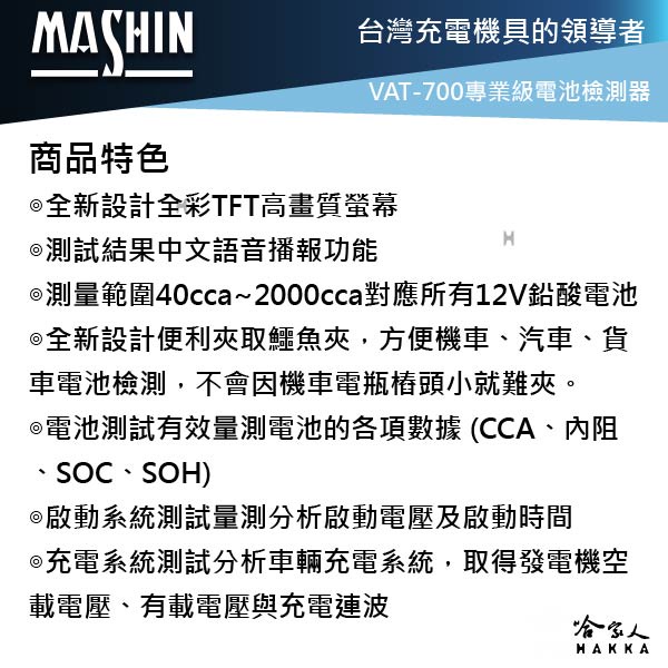 麻新電子 VAT-700 電瓶檢測器 全12v電池適用 發電機 啟動馬達 40~2000CCA VAT-700 哈家人麻新電子 VAT-700 電瓶檢測器 全12v電池適用 發電機 啟動馬達 40~2000CCA VAT-700 哈家人Test, Diagnostic & Repair Tools【 哈家人 】油Shop