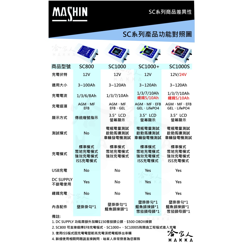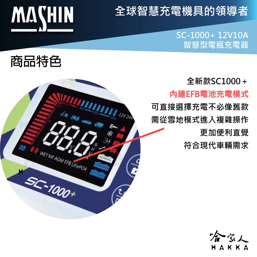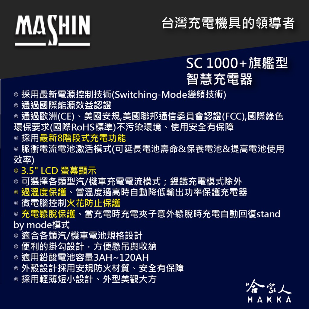 麻新電子 新款 SC 1000+ 汽機車全自動電池充電器 EFB AGM 鋰鐵 充電機 SC1000+ 哈家