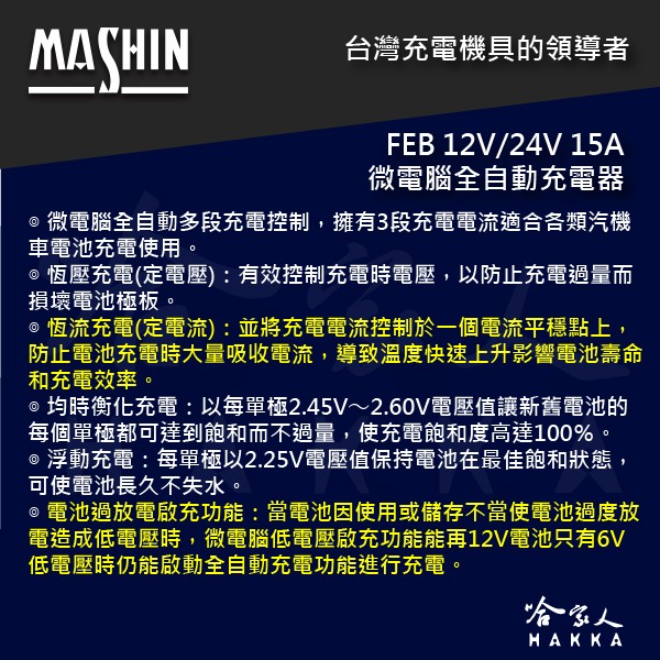 【 麻新電子 】 FEB 12/24 15 全自動 12v 24v 電池 充電器 15A 可充 210AH電瓶 哈家人【 麻新電子 】 FEB 12/24 15 全自動 12v 24v 電池 充電器 15A 可充 210AH電瓶 哈家人Electronics【 哈家人 】油Shop