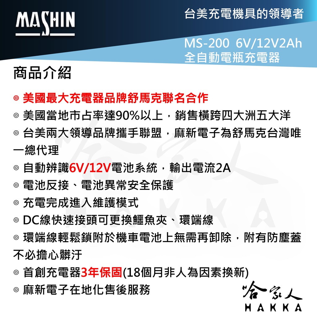 麻新電子 ms-200 全自動 電瓶充電器 6v 12v 2a 機車 免拆電池 ms 200 哈家人