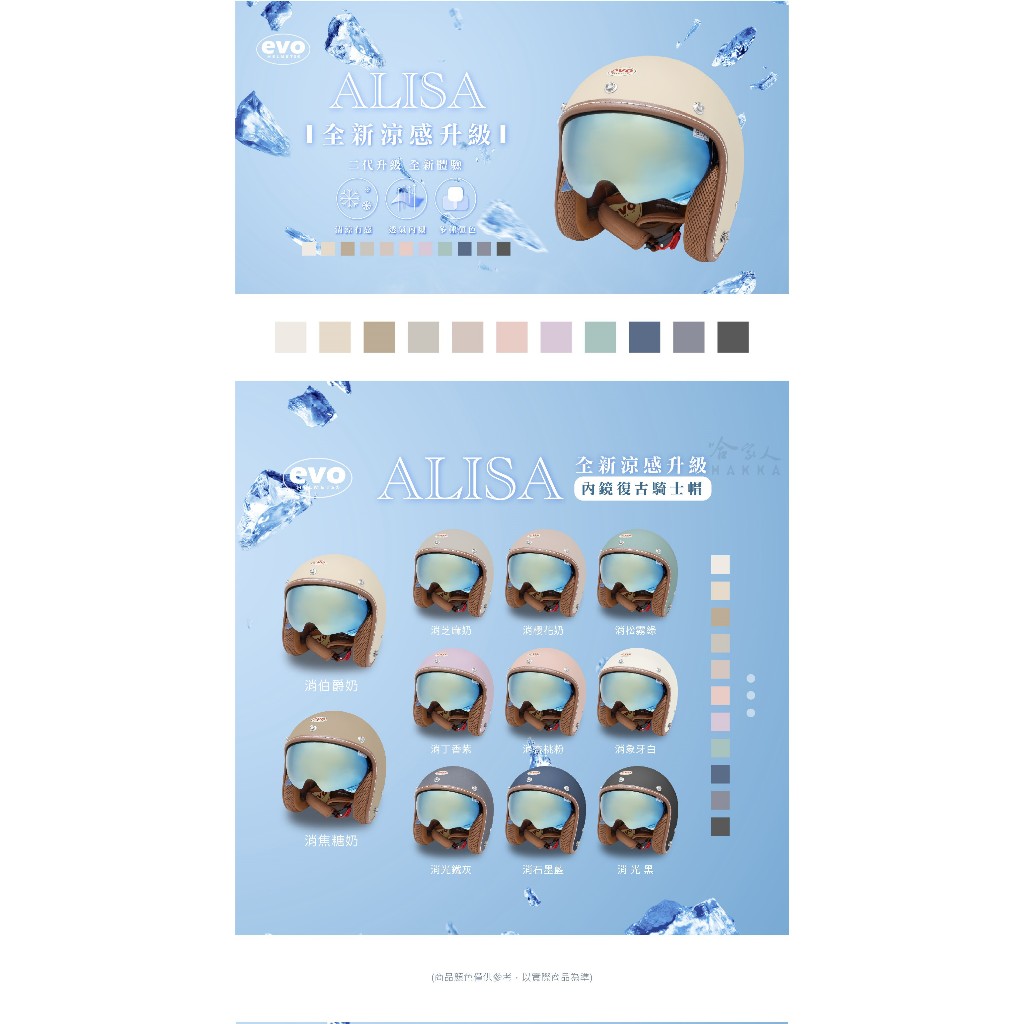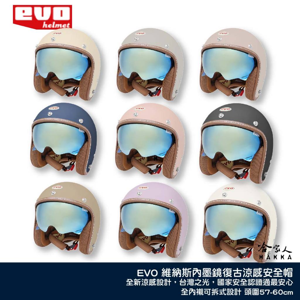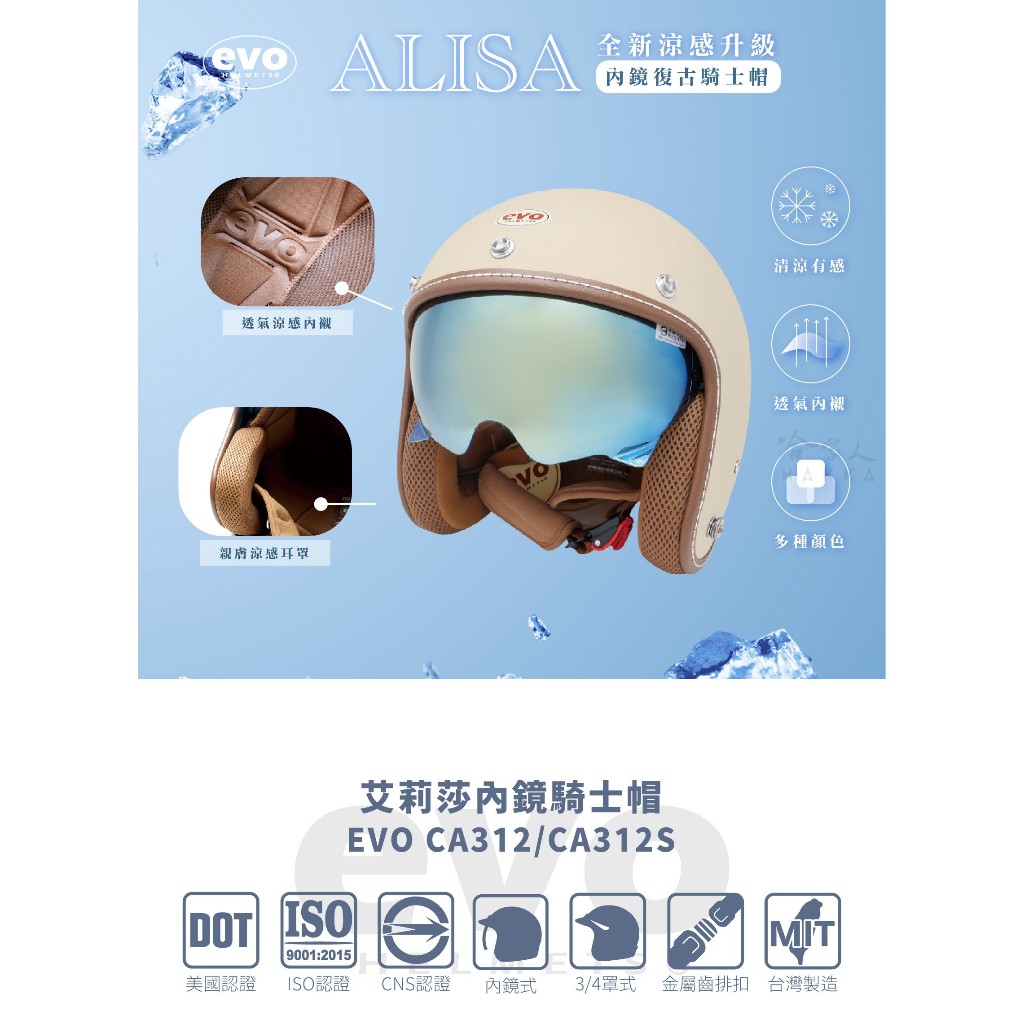 EVO 艾莉莎 ALISA 涼感安全帽台灣製造 內墨鏡 安全帽 機車安全帽 3/4安全帽 消光黑 消光藍 奶茶色 哈家人