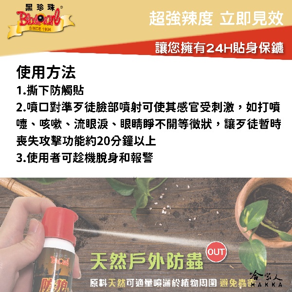 黑珍珠 水柱型 防狼噴霧劑 3公尺 60ML 辣椒水 防狼噴霧 超強辣度 防身 防狼 水柱款 台灣製造 哈家人