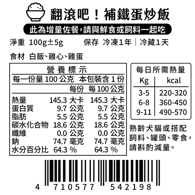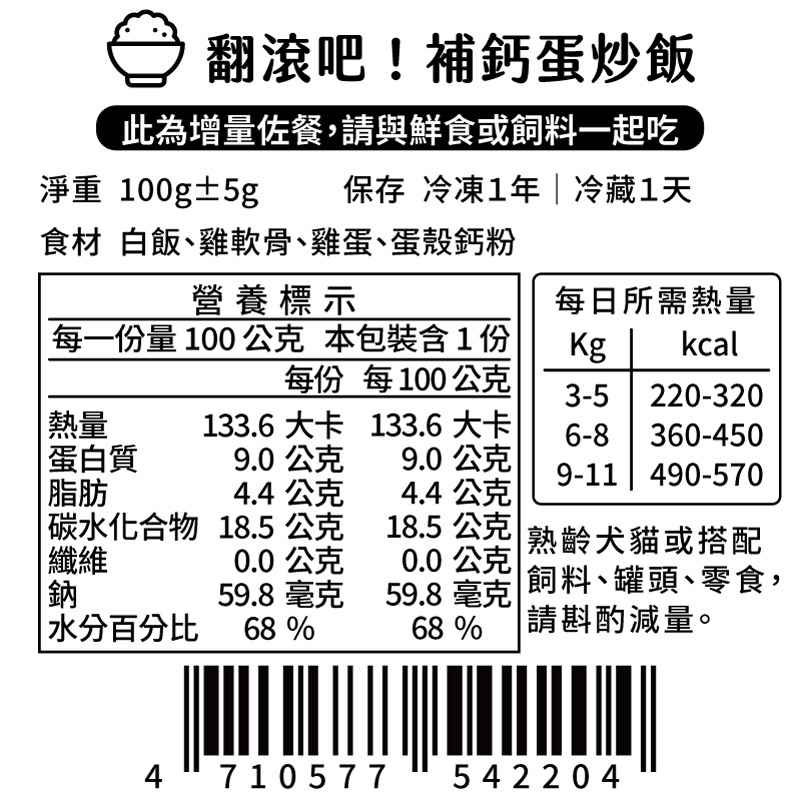 【汪事如意】翻滾吧!蛋炒飯 (增量佐餐)補鈣(雞軟骨)|補鐵(黑豚心)Dog Food【 汪事如意 五星寵物鮮食 】